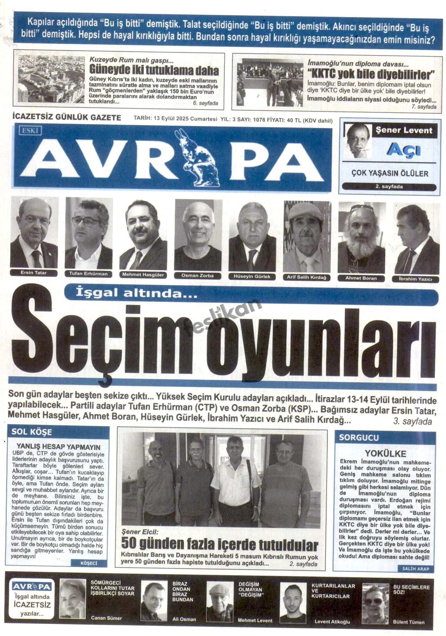 Gazete Manşetleri - 13 Eylül 2025 KIBRIS 13 Eyl Yazan: Feslikan Haber Ajansı KKTC ve Türkiye gazetelerinin manşetleri burada… Ana Sayfa Feslikan Haber Ajansı