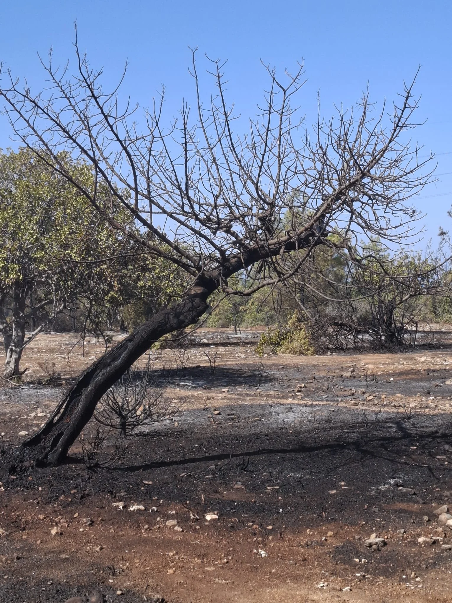 TAK muhabirine konu hakkında bilgi veren Poyraz, yangından 12 dönümlük arazinin etkilendiğini, 53 harup, 10 zeytin ve 80 çam ağacının yanarak zarar gördüğünü kaydetti.