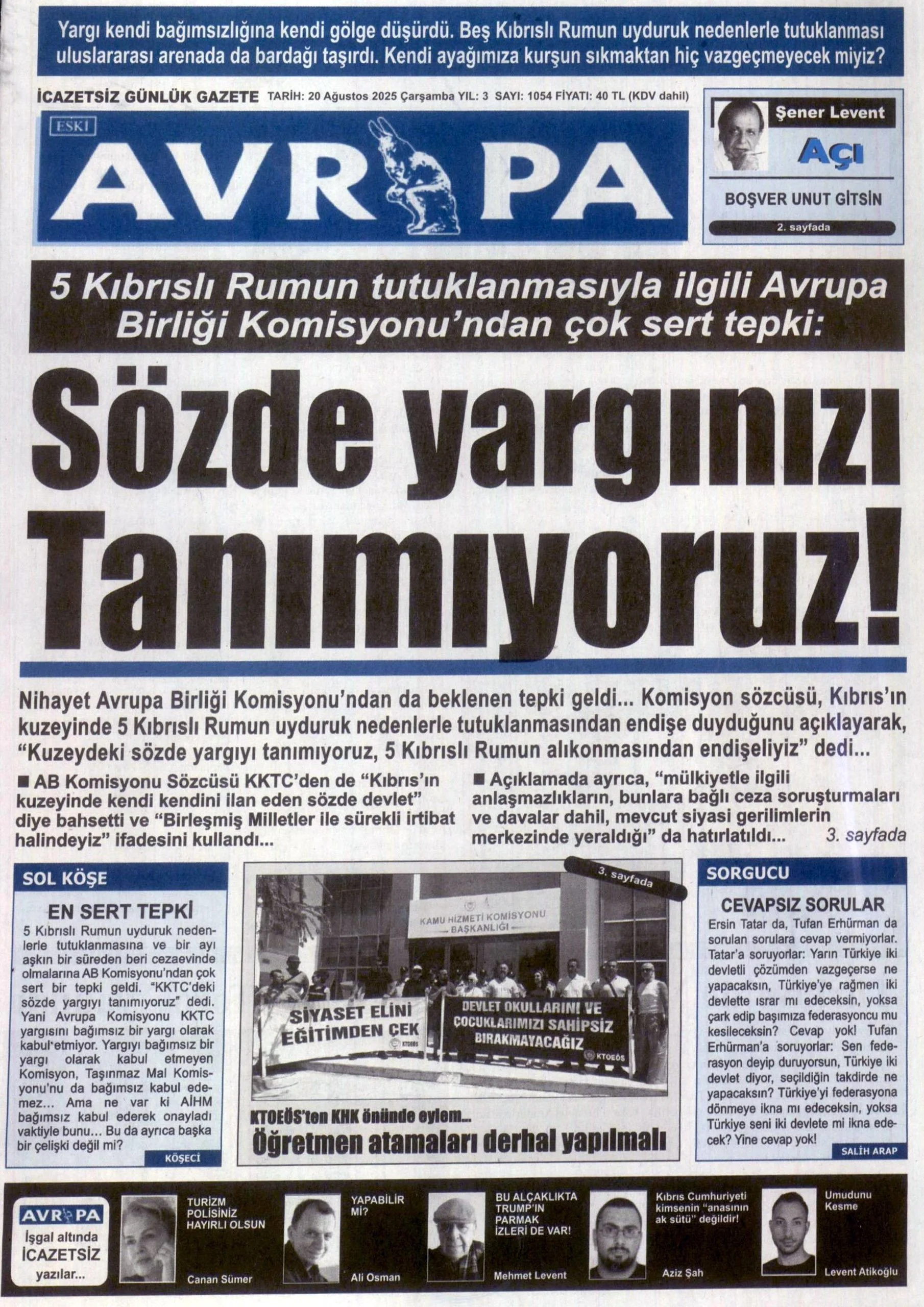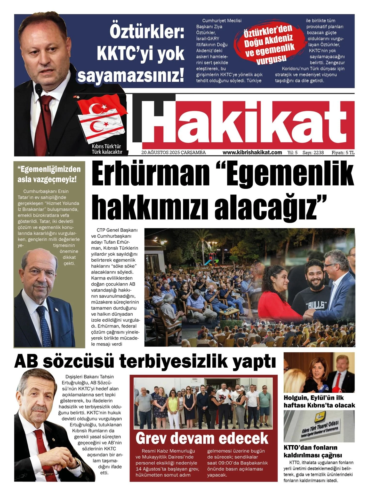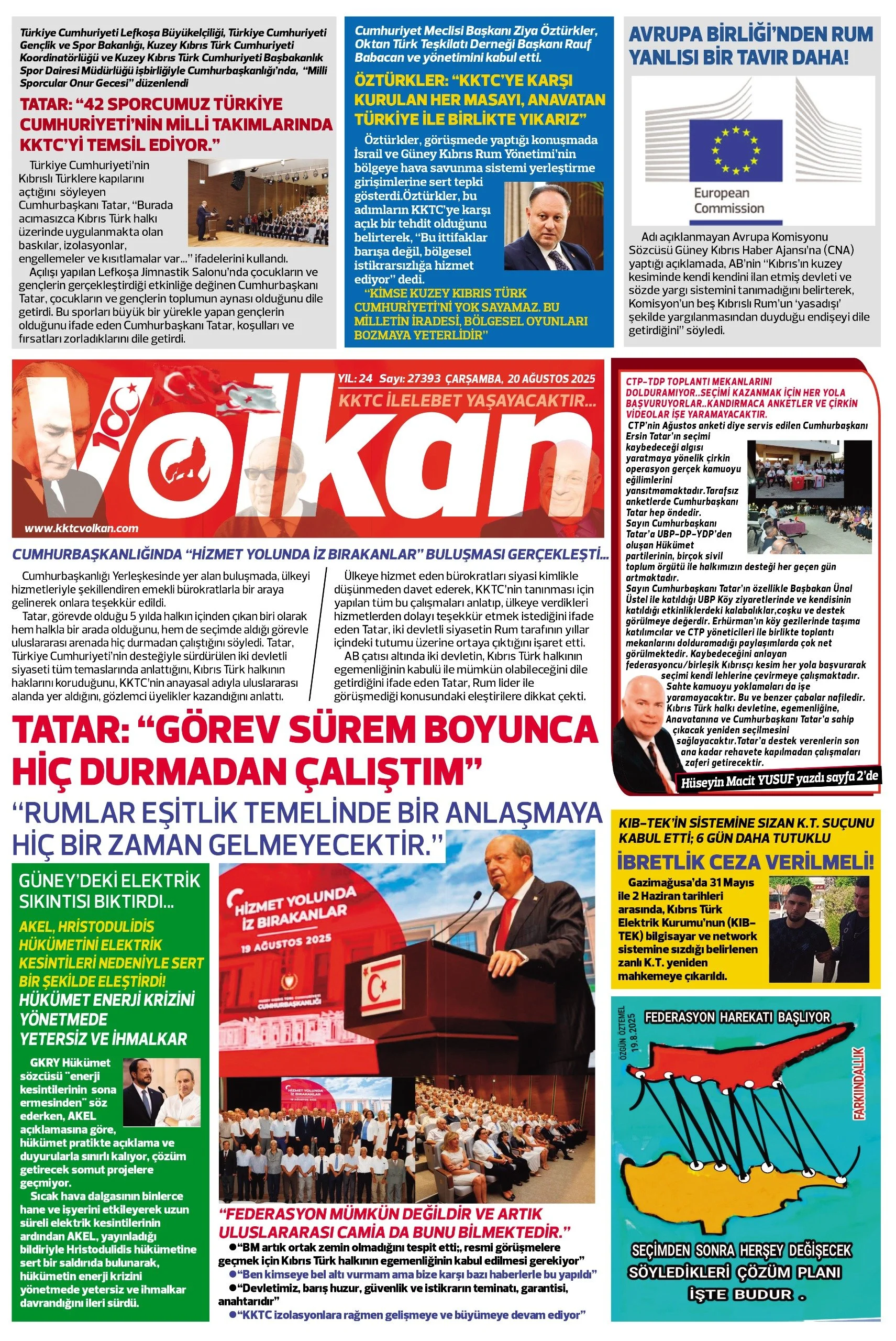 Gazete Manşetleri - 20 Ağustos 2025 KIBRIS 20 Ağu Yazan: Feslikan Haber Ajansı KKTC ve Türkiye gazetelerinin manşetleri burada… Ana Sayfa Feslikan Haber Ajansı