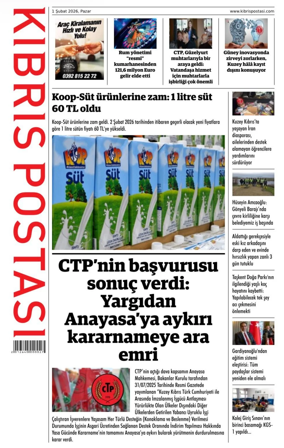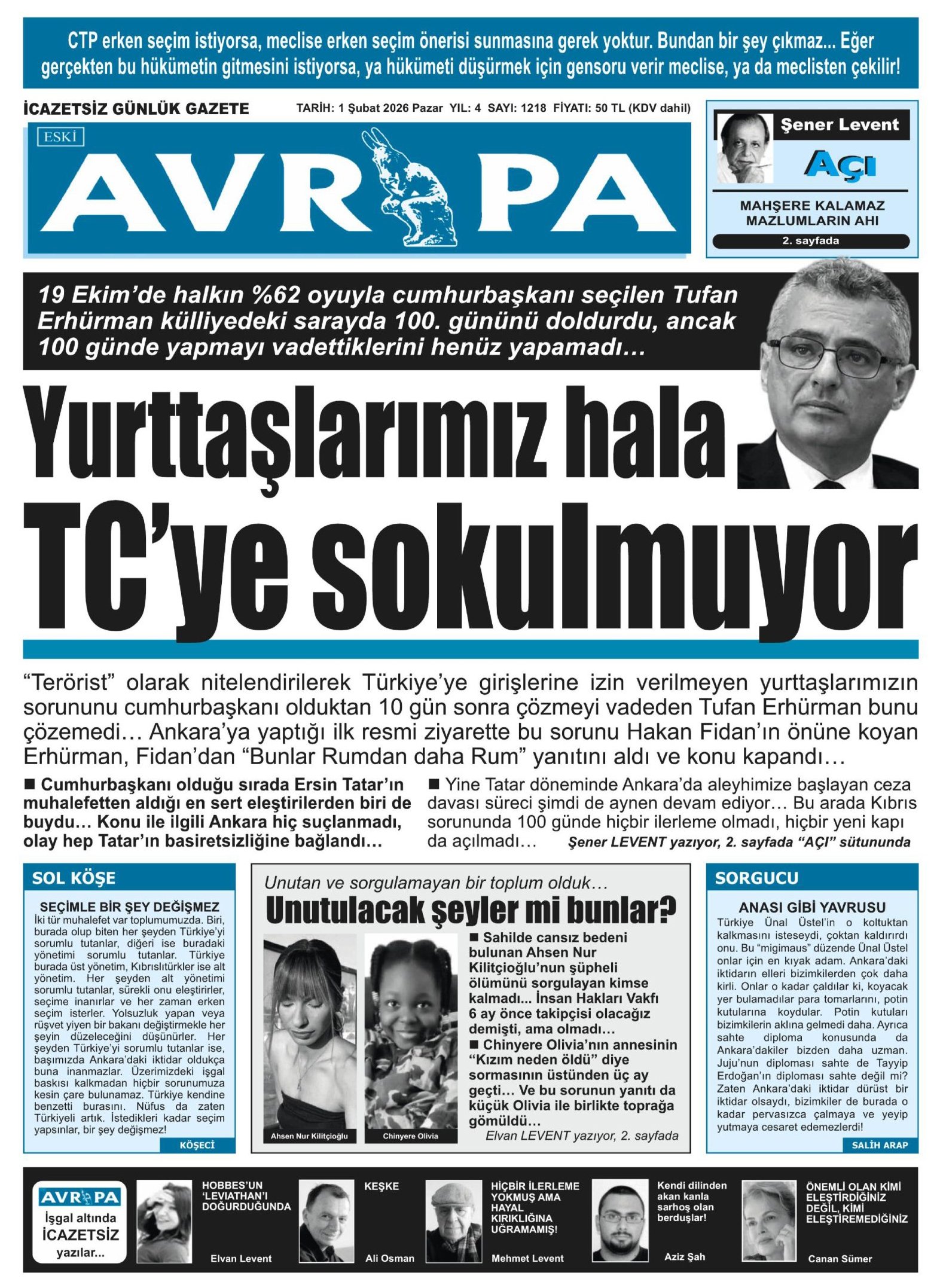 Gazete Manşetleri - 1 Şubat 2026 GAZETE MANŞETLERİ 1 Şub Yazan: Feslikan Haber Ajansı manşetler Feslikan Haber Ajansı