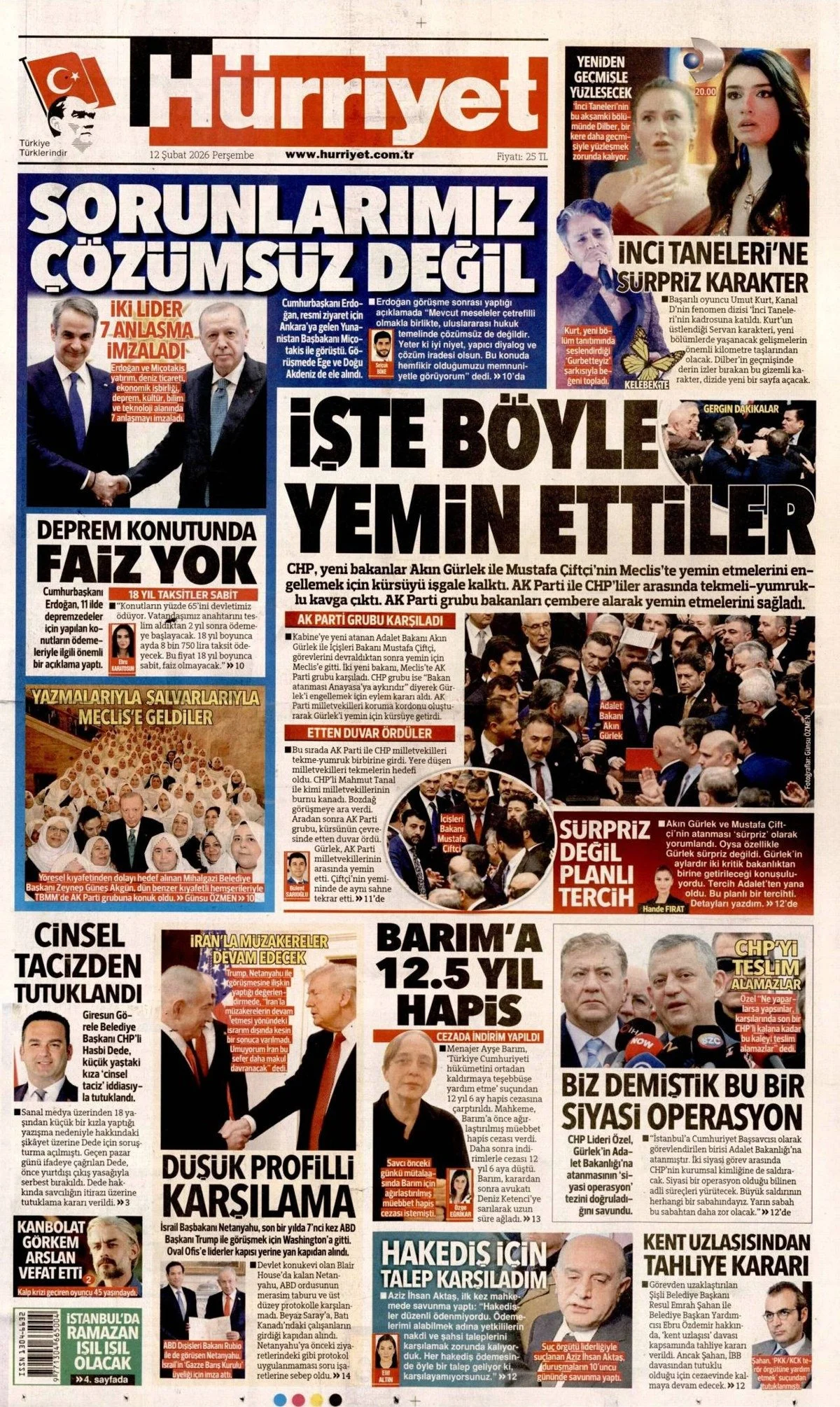 Gazete Manşetleri - 12 Şubat 2026 GAZETE MANŞETLERİ 12 Şub Yazan: Feslikan Haber Ajansı manşetler Feslikan Haber Ajansı