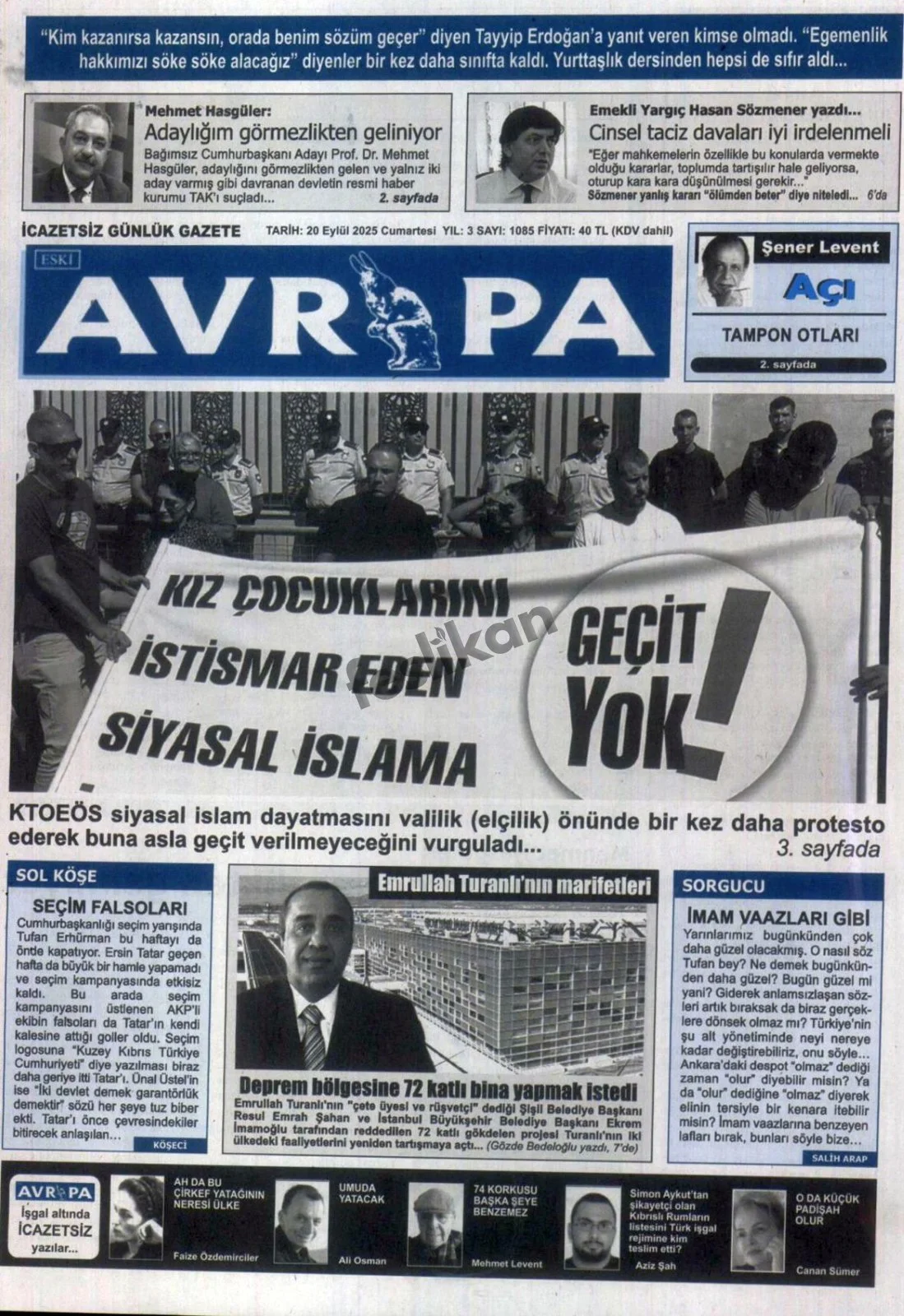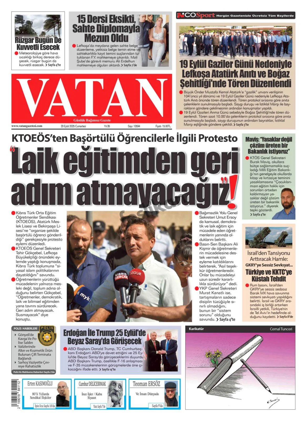 Gazete Manşetleri - 20 Eylül 2025 KIBRIS 20 Eyl Yazan: Feslikan Haber Ajansı KKTC ve Türkiye gazetelerinin manşetleri burada… Ana Sayfa Feslikan Haber Ajansı