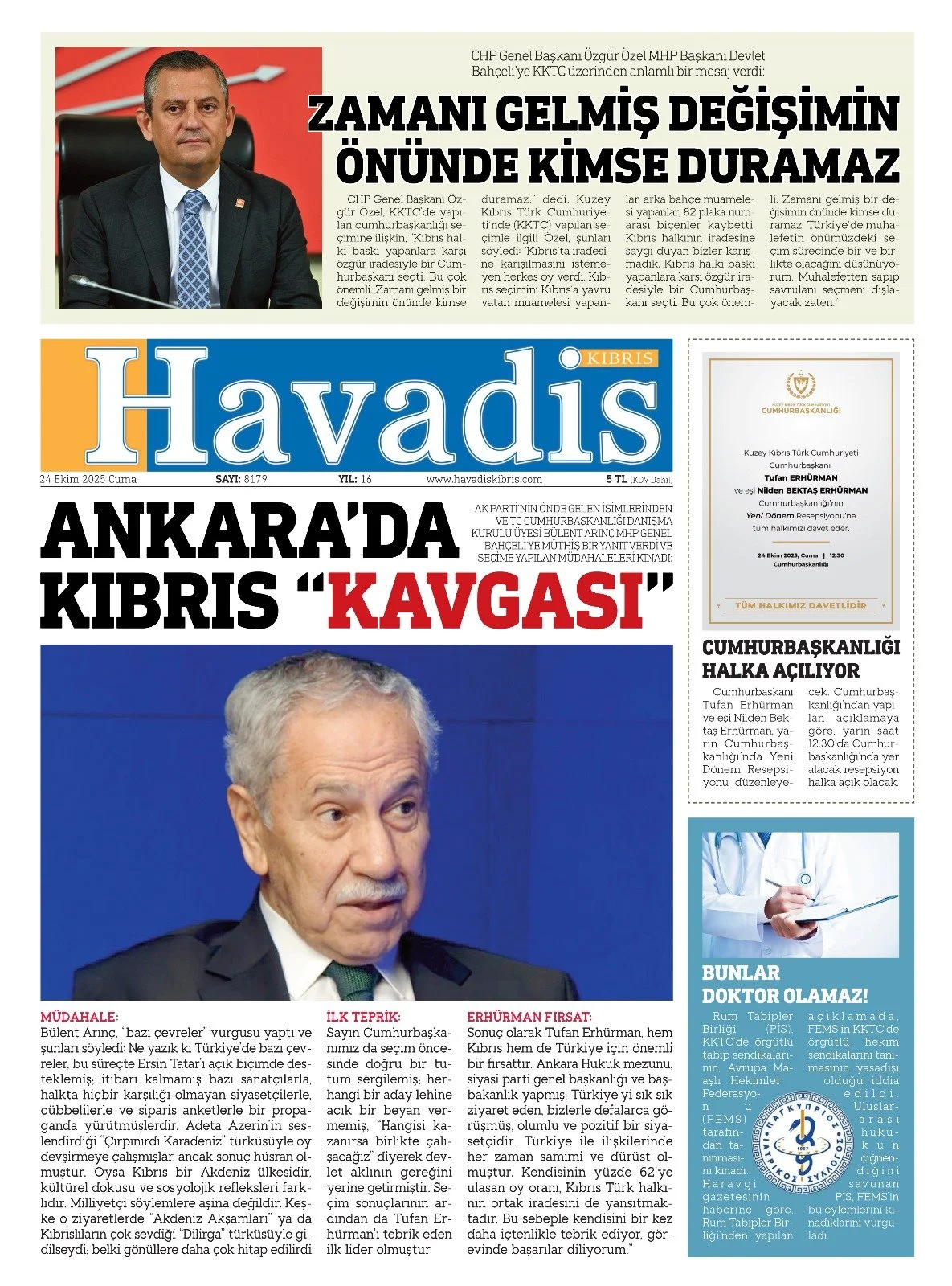 Gazete Manşetleri - 24 Ekim 2025 GAZETE MANŞETLERİ 24 Eki Yazan: Feslikan Haber Ajansı KKTC ve Türkiye gazetelerinin manşetleri burada… manşetler Feslikan Haber Ajansı