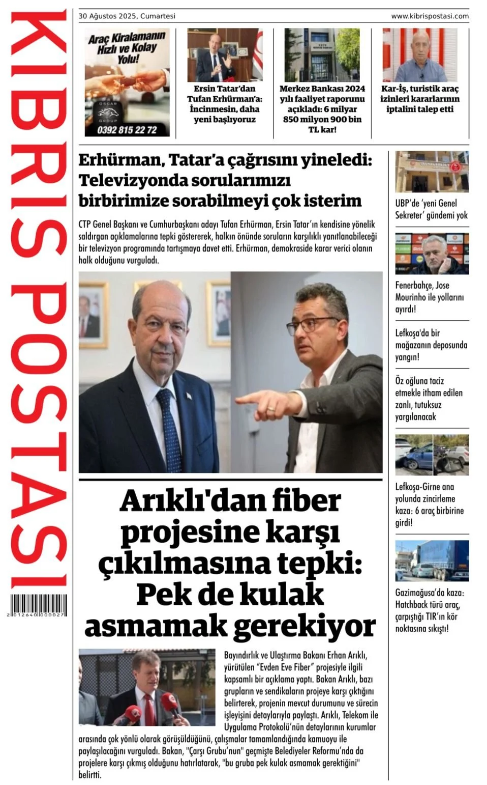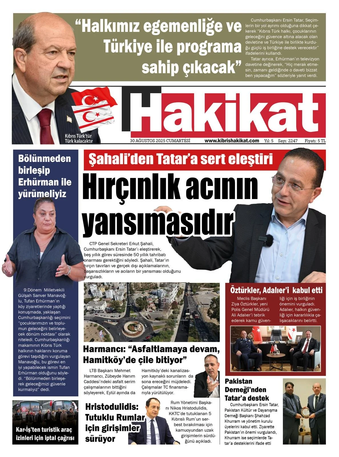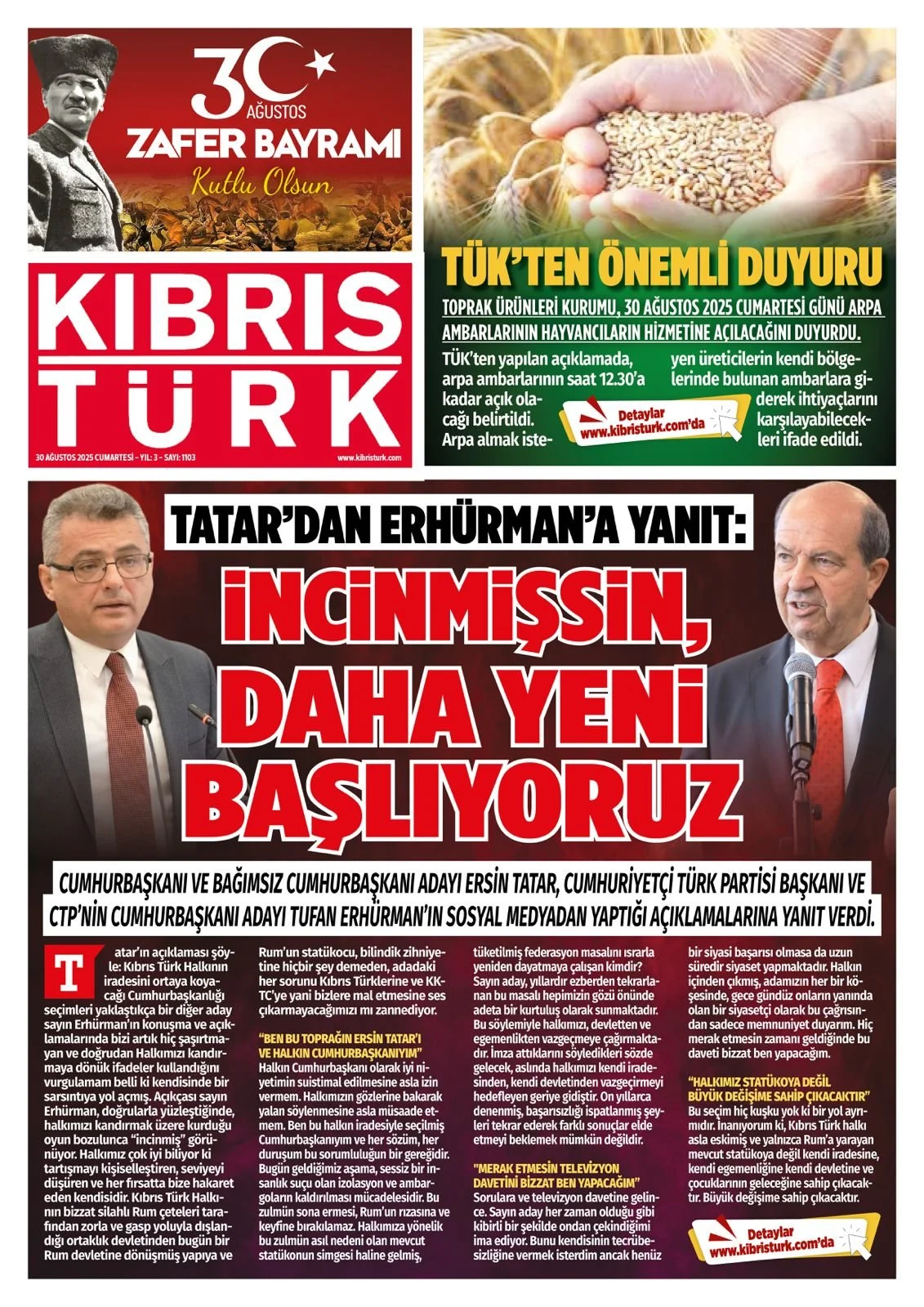 Gazete Manşetleri - 30 Ağustos 2025 KIBRIS 30 Ağu Yazan: Feslikan Haber Ajansı KKTC ve Türkiye gazetelerinin manşetleri burada… Ana Sayfa Feslikan Haber Ajansı