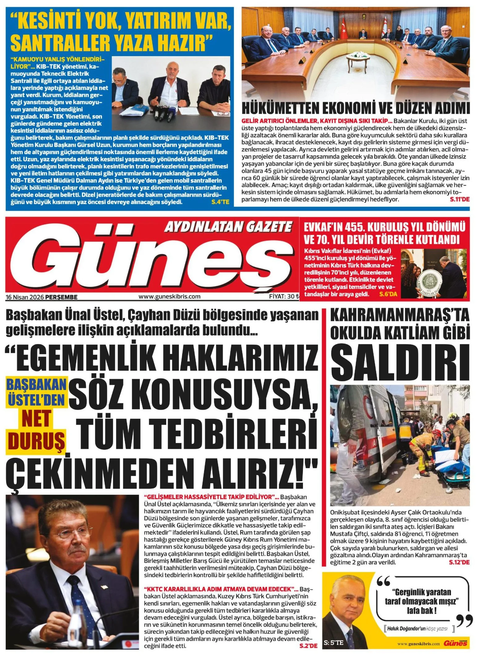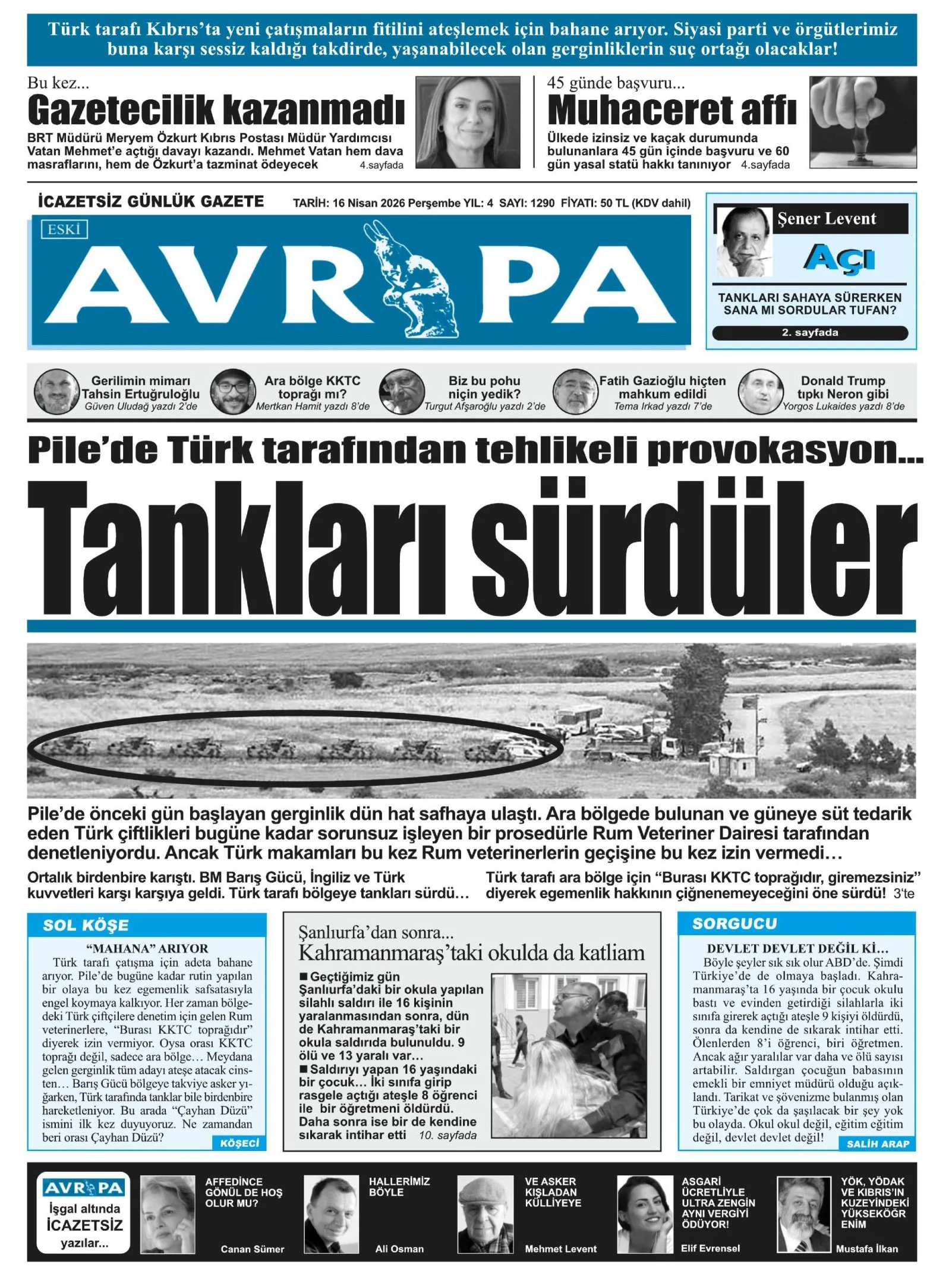 Gazete Manşetleri - 16 Nisan 2026 GAZETE MANŞETLERİ 16 Nis Yazan: Feslikan Haber Ajansı manşetler Feslikan Haber Ajansı