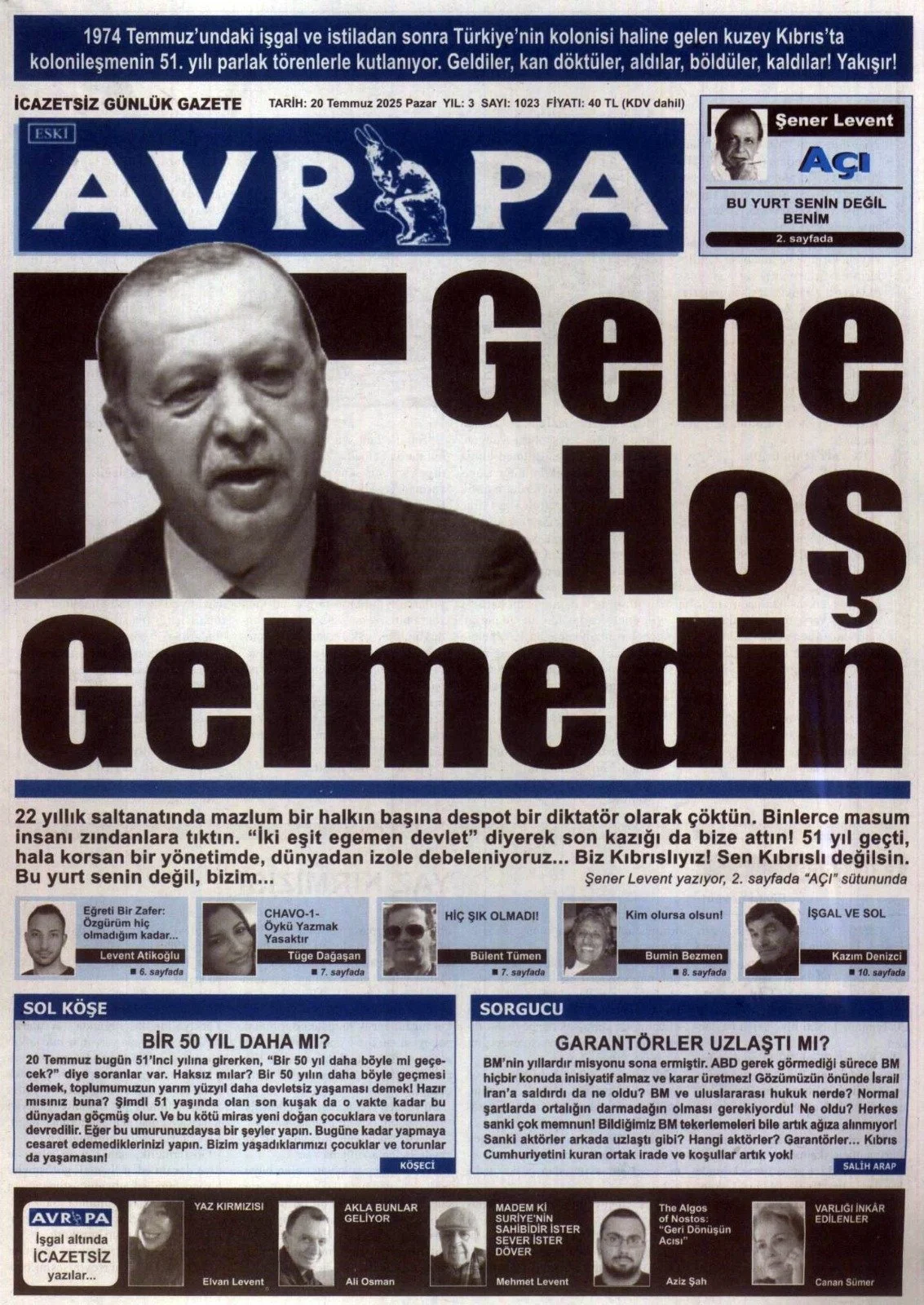 Gazete Manşetleri - 20 Temmuz 2025 KIBRIS 20 Tem Yazan: Feslikan Haber Ajansı KKTC ve Türkiye gazetelerinin manşetleri burada… Ana Sayfa Feslikan Haber Ajansı