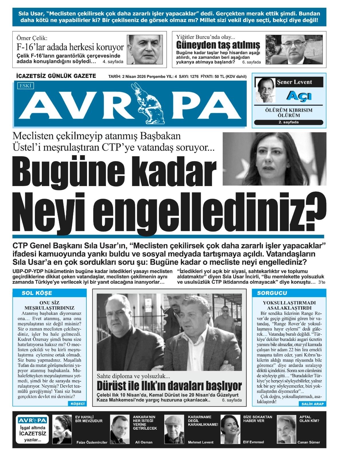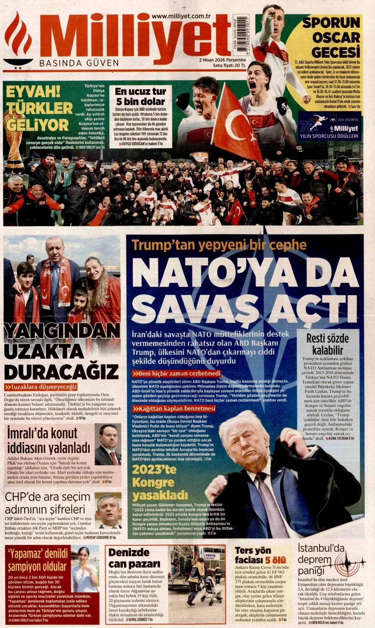 Gazete Manşetleri - 2 Nisan 2026 GAZETE MANŞETLERİ 1 Nis Yazan: Feslikan Haber Ajansı manşetler Feslikan Haber Ajansı