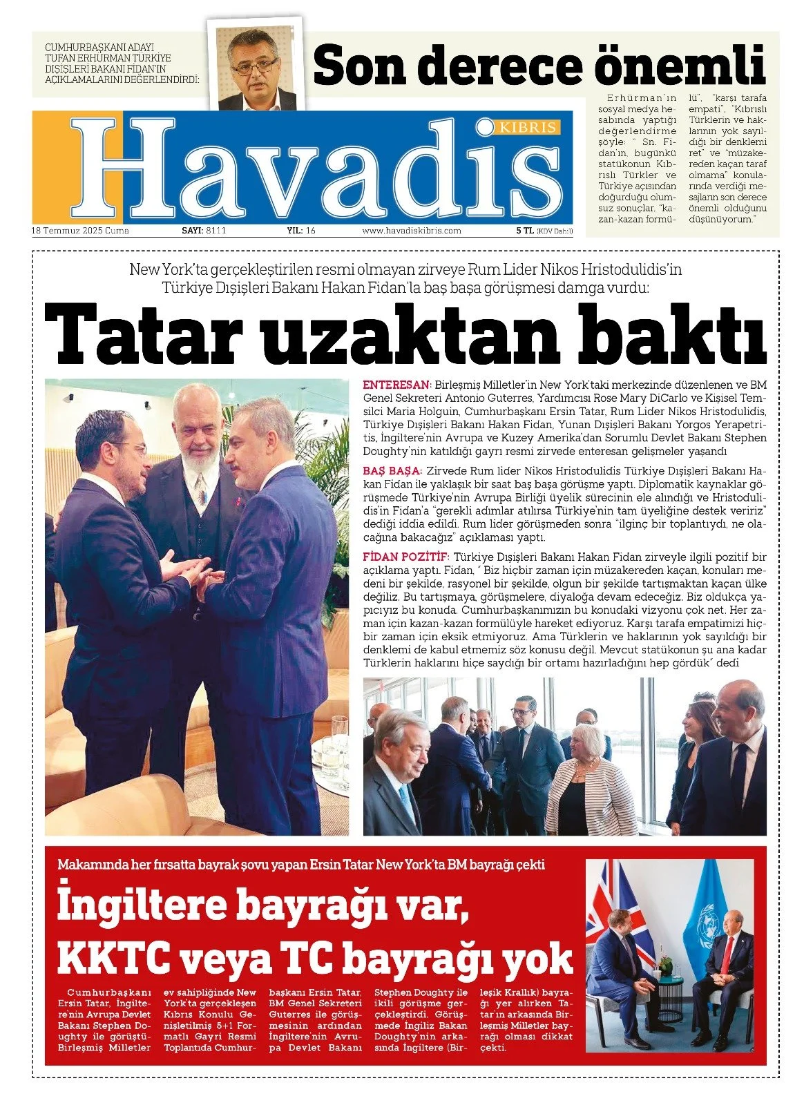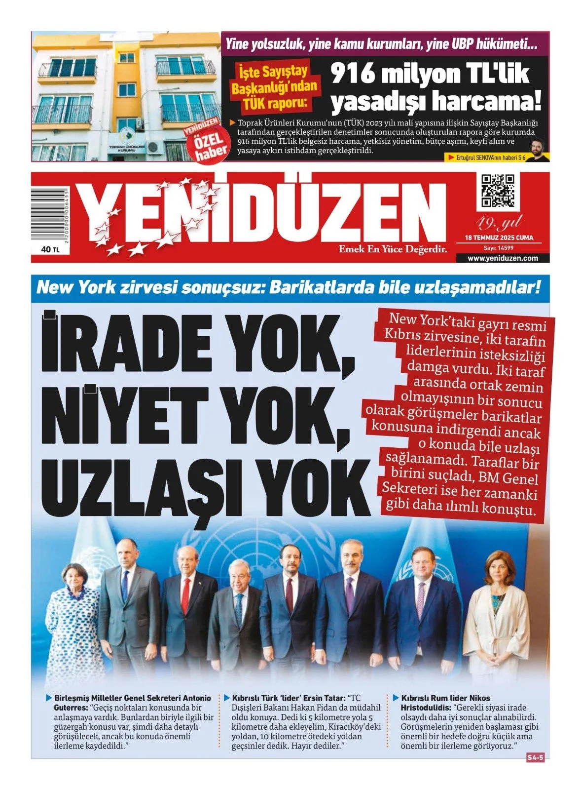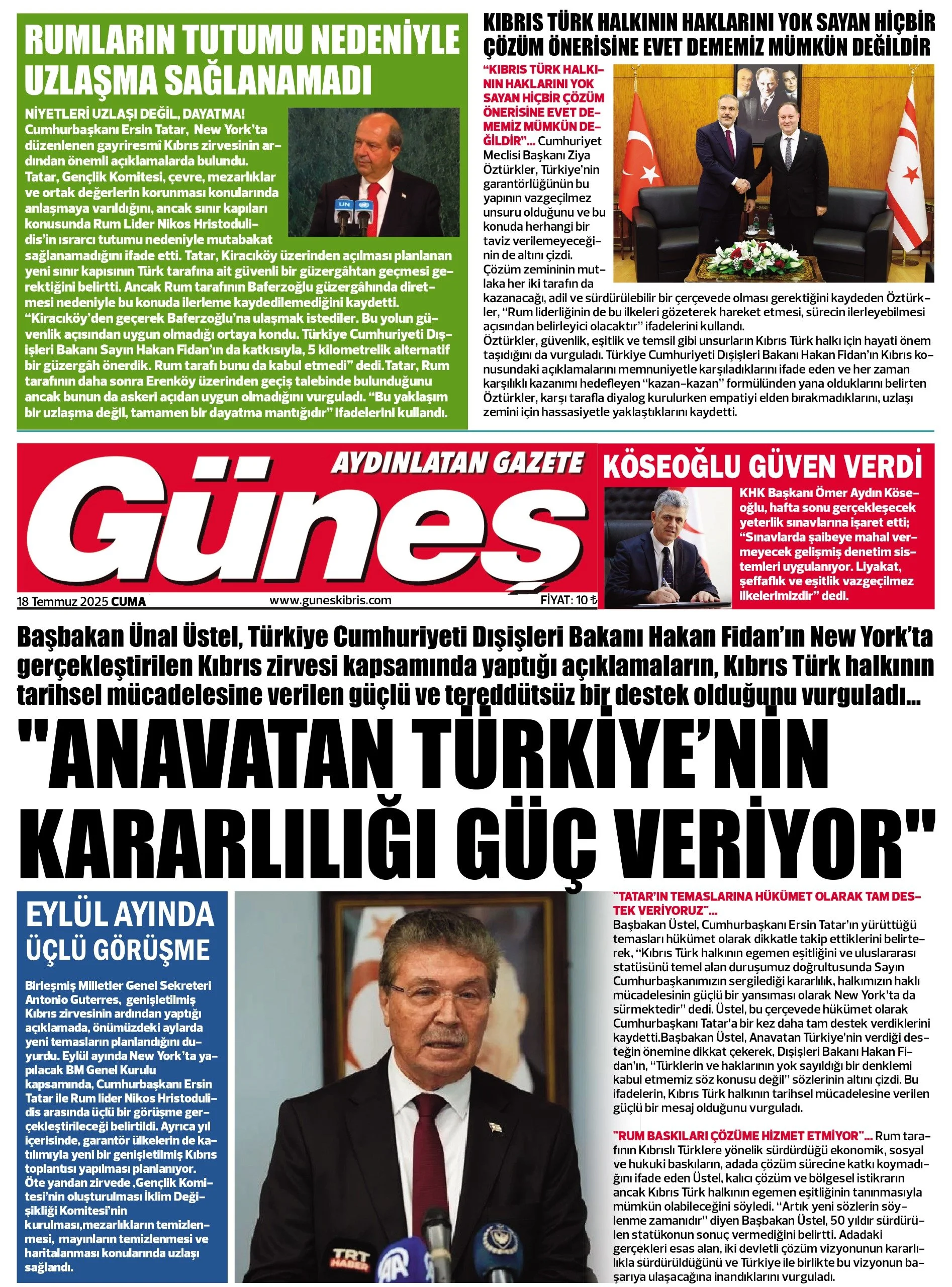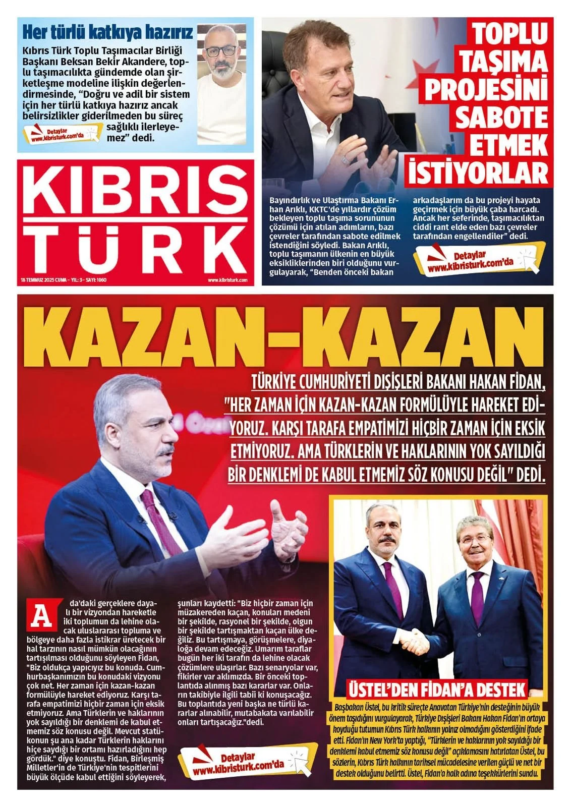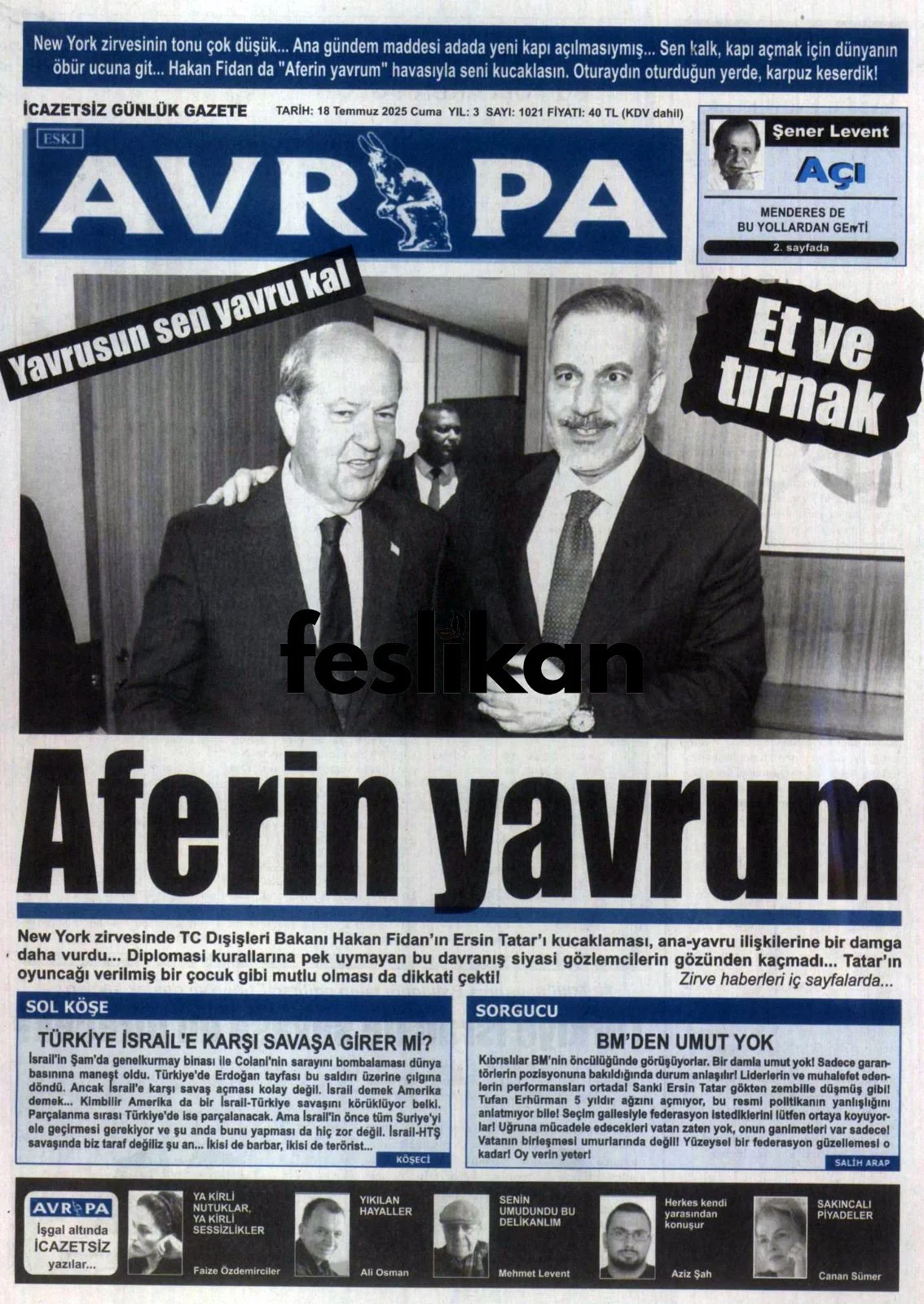 Gazete Manşetleri - 18 Temmuz 2025 KIBRIS 18 Tem Yazan: Feslikan Haber Ajansı KKTC ve Türkiye gazetelerinin manşetleri burada… Ana Sayfa Feslikan Haber Ajansı