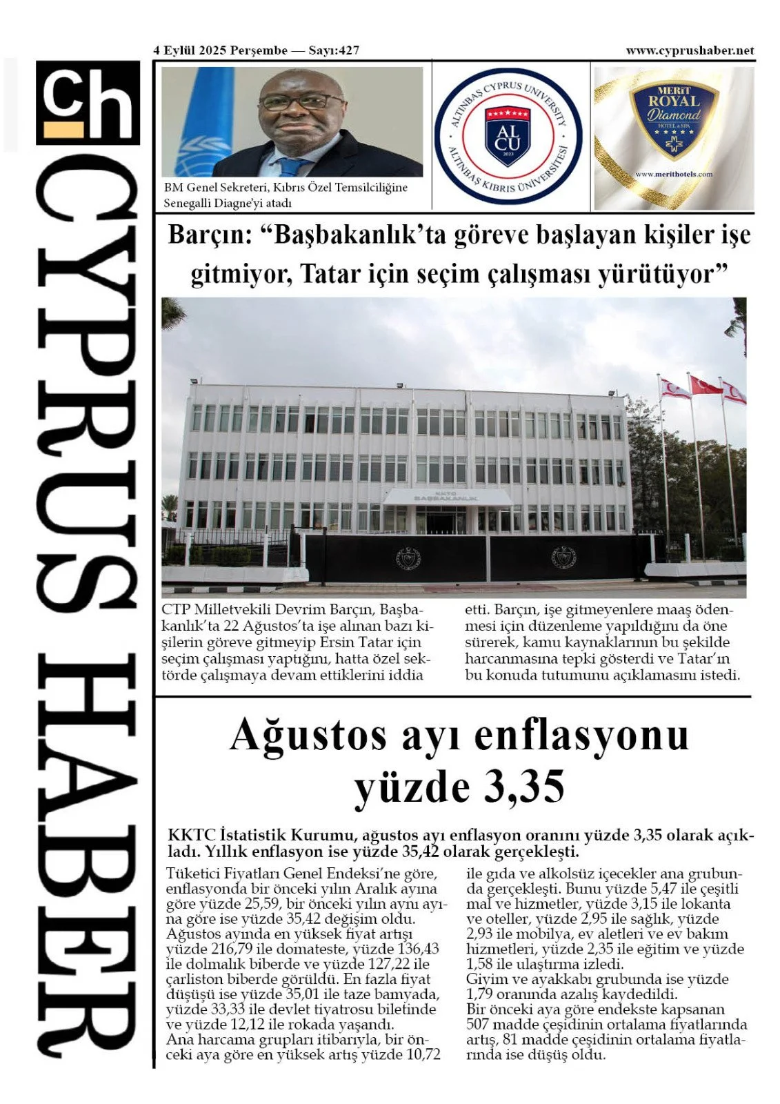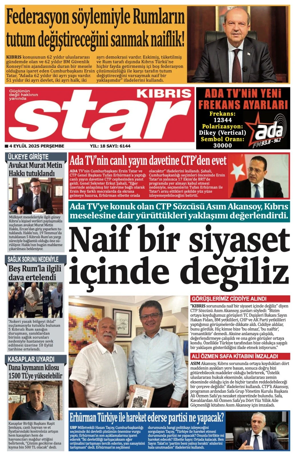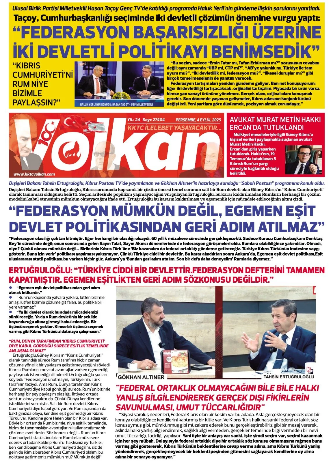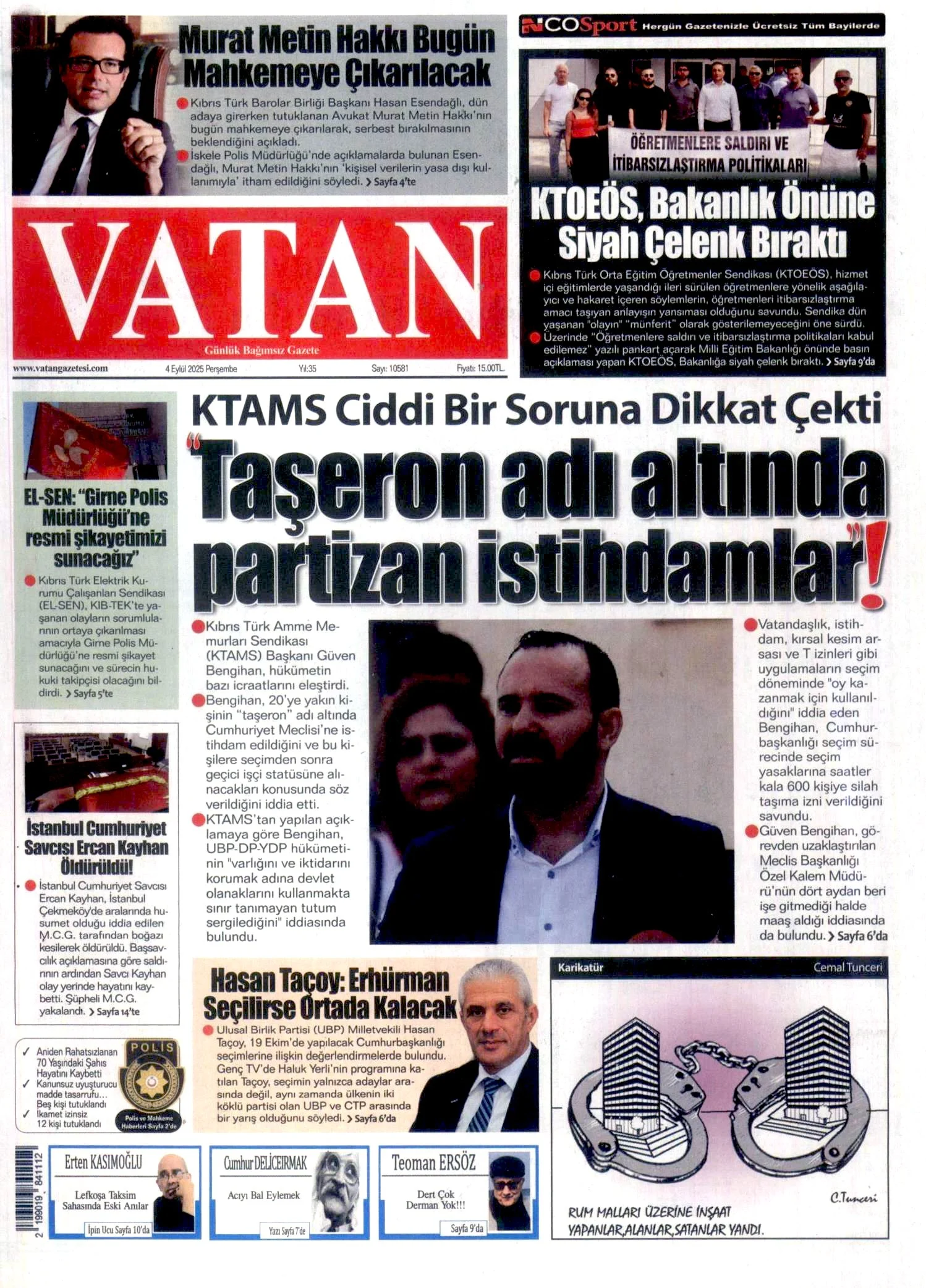 Gazete Manşetleri - 4 Eylül 2025 KIBRIS 4 Eyl Yazan: Feslikan Haber Ajansı KKTC ve Türkiye gazetelerinin manşetleri burada… Ana Sayfa Feslikan Haber Ajansı