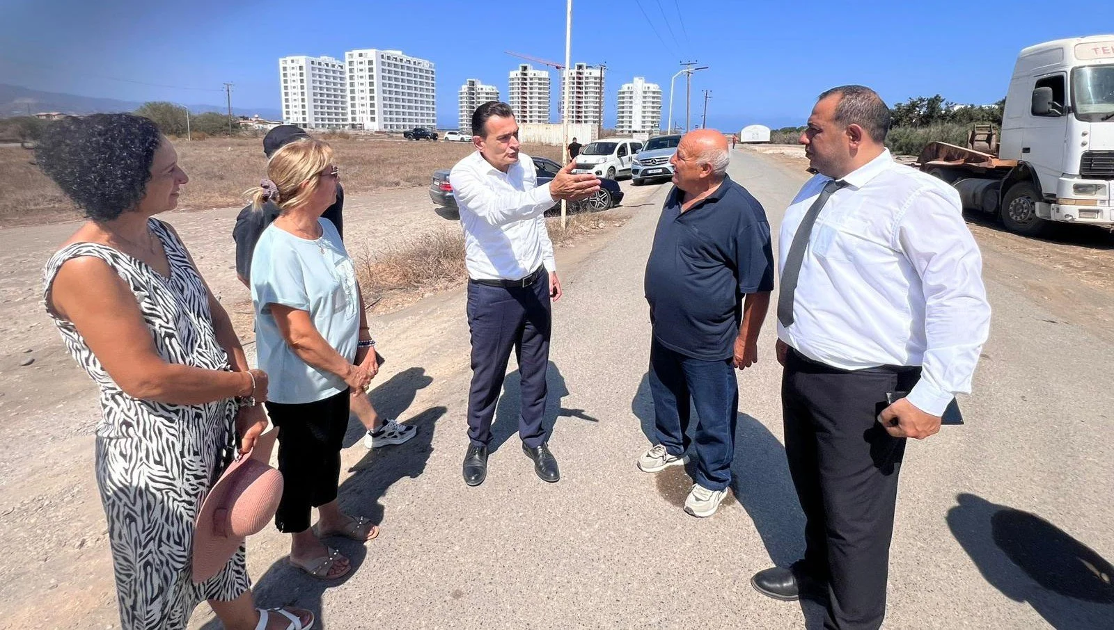İçişleri Bakanı Dursun Oğuz, Gaziveren’i ziyaret ederek yürütülen çalışmaları Lefke Kaymakamı Savaş Orakçıoğlu, Bakanlık Müsteşarı Hüseyin Gültekin ve köy muhtarı Zekiye Akarsular ile birlikte yerinde inceledi.