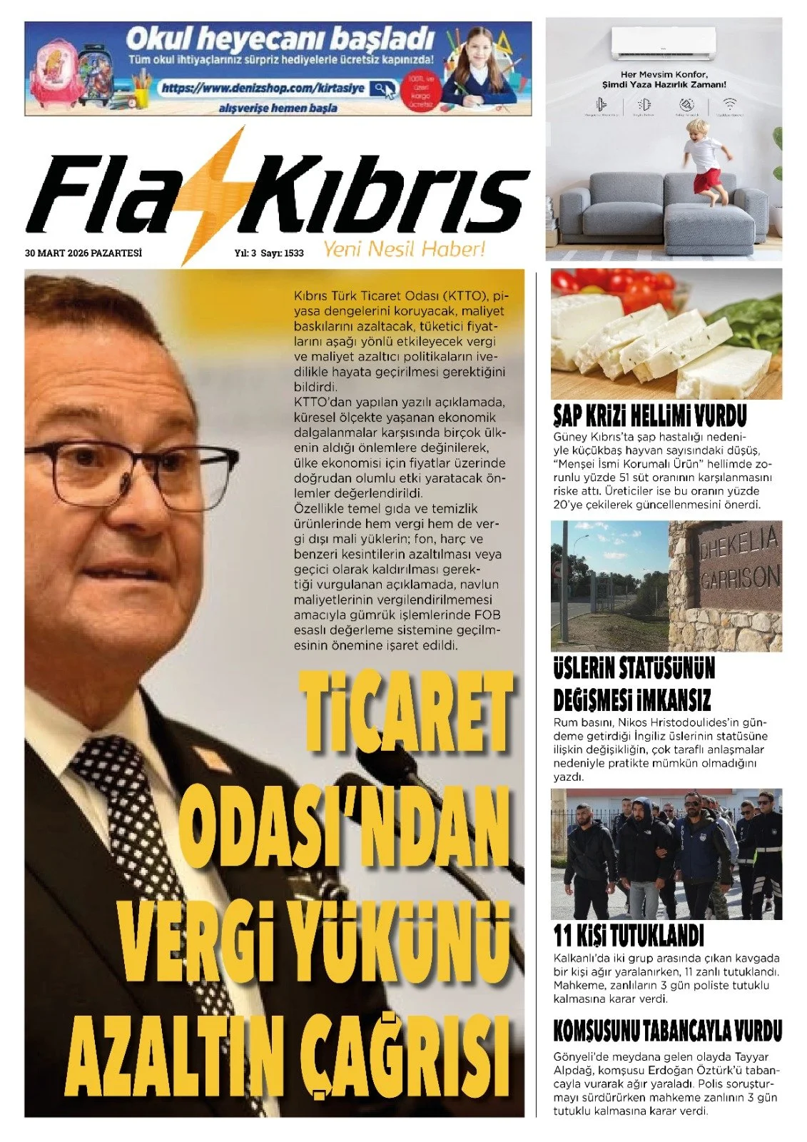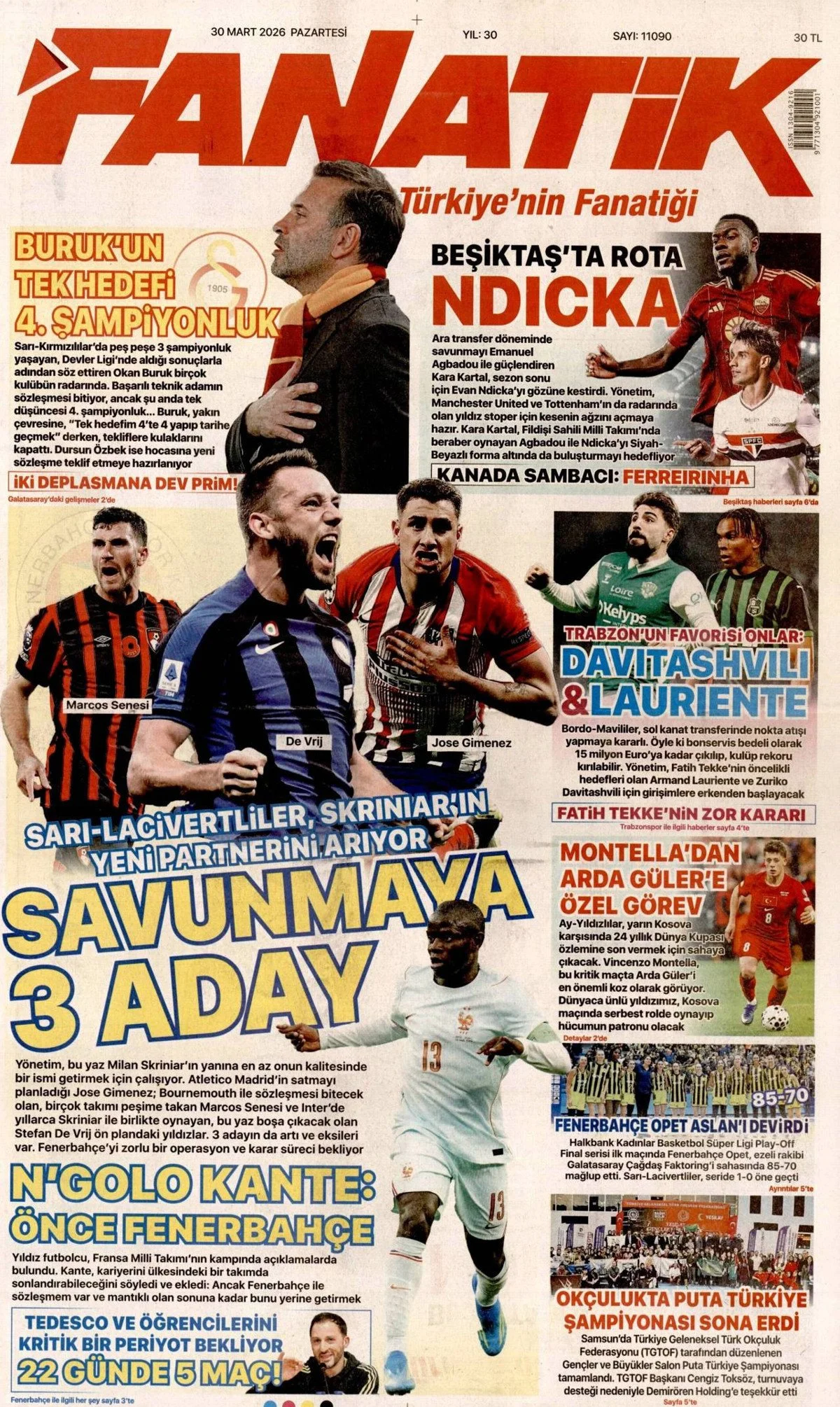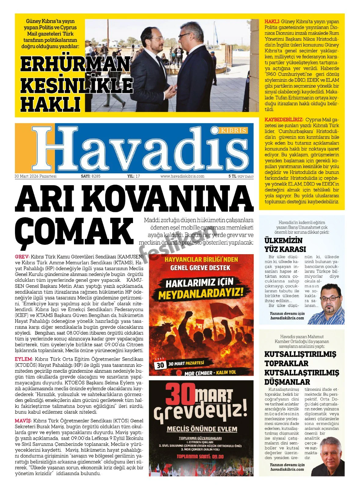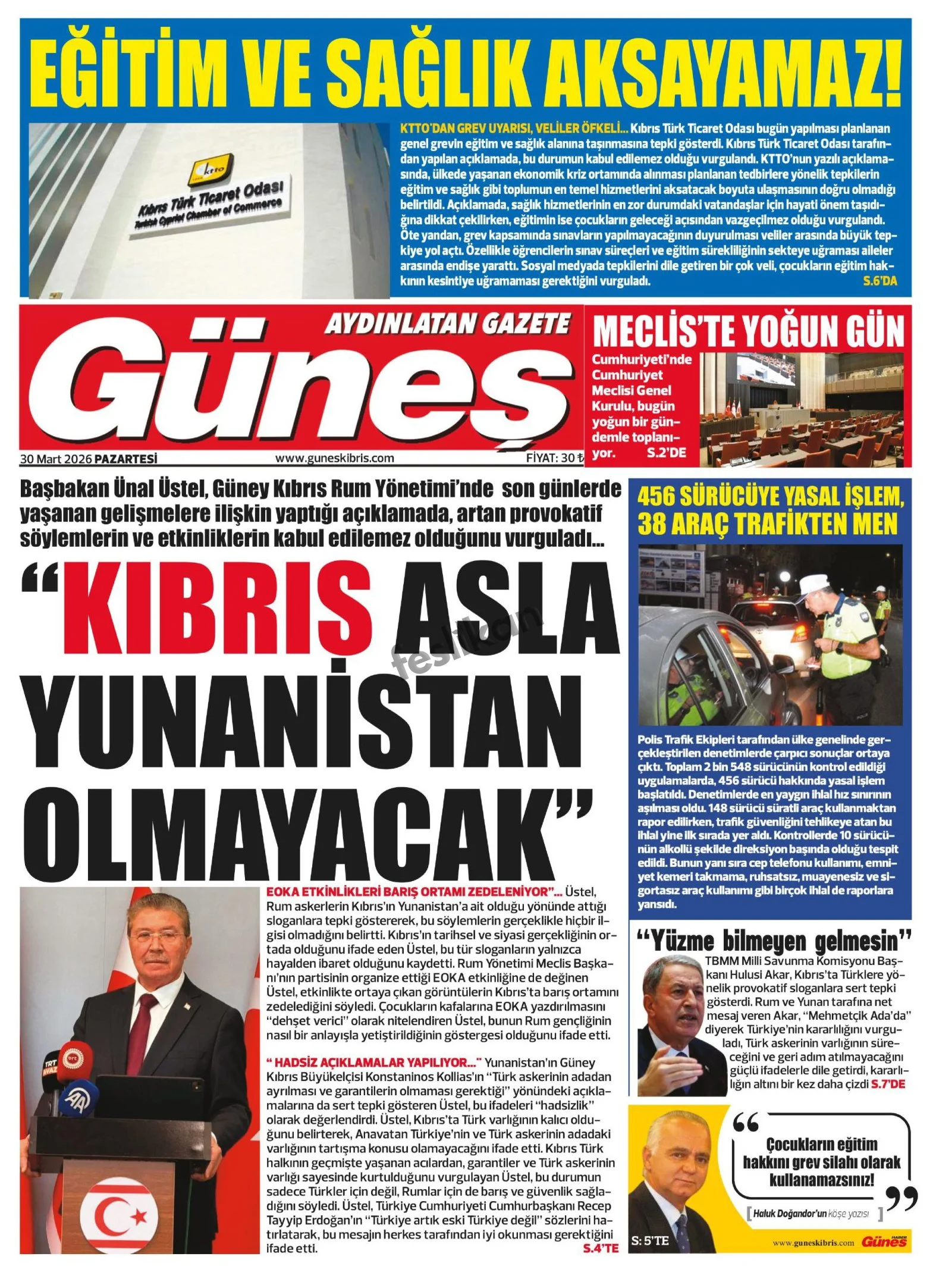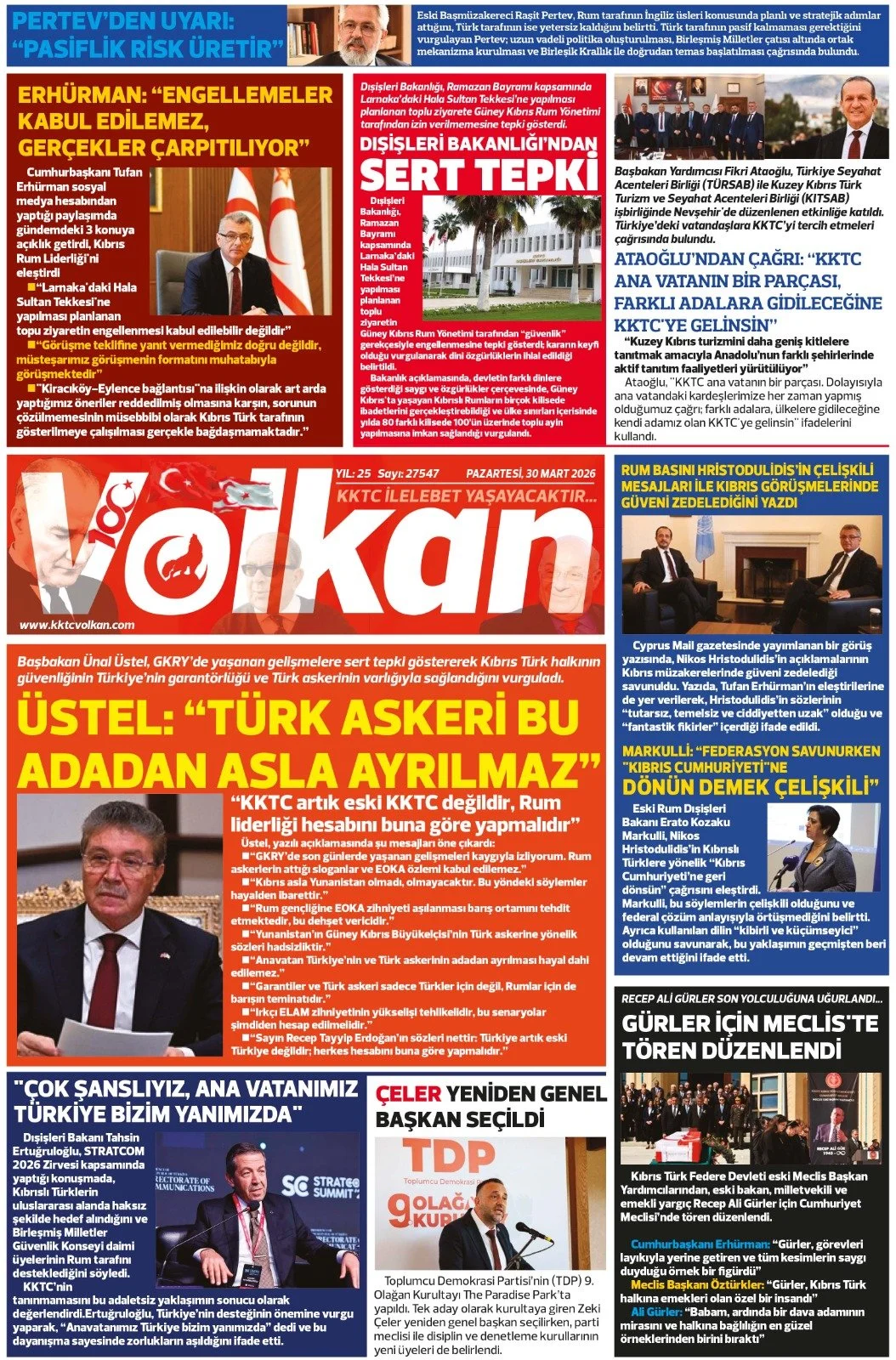 Gazete Manşetleri - 30 Mart 2026 GAZETE MANŞETLERİ 30 Mar Yazan: Feslikan Haber Ajansı manşetler Feslikan Haber Ajansı