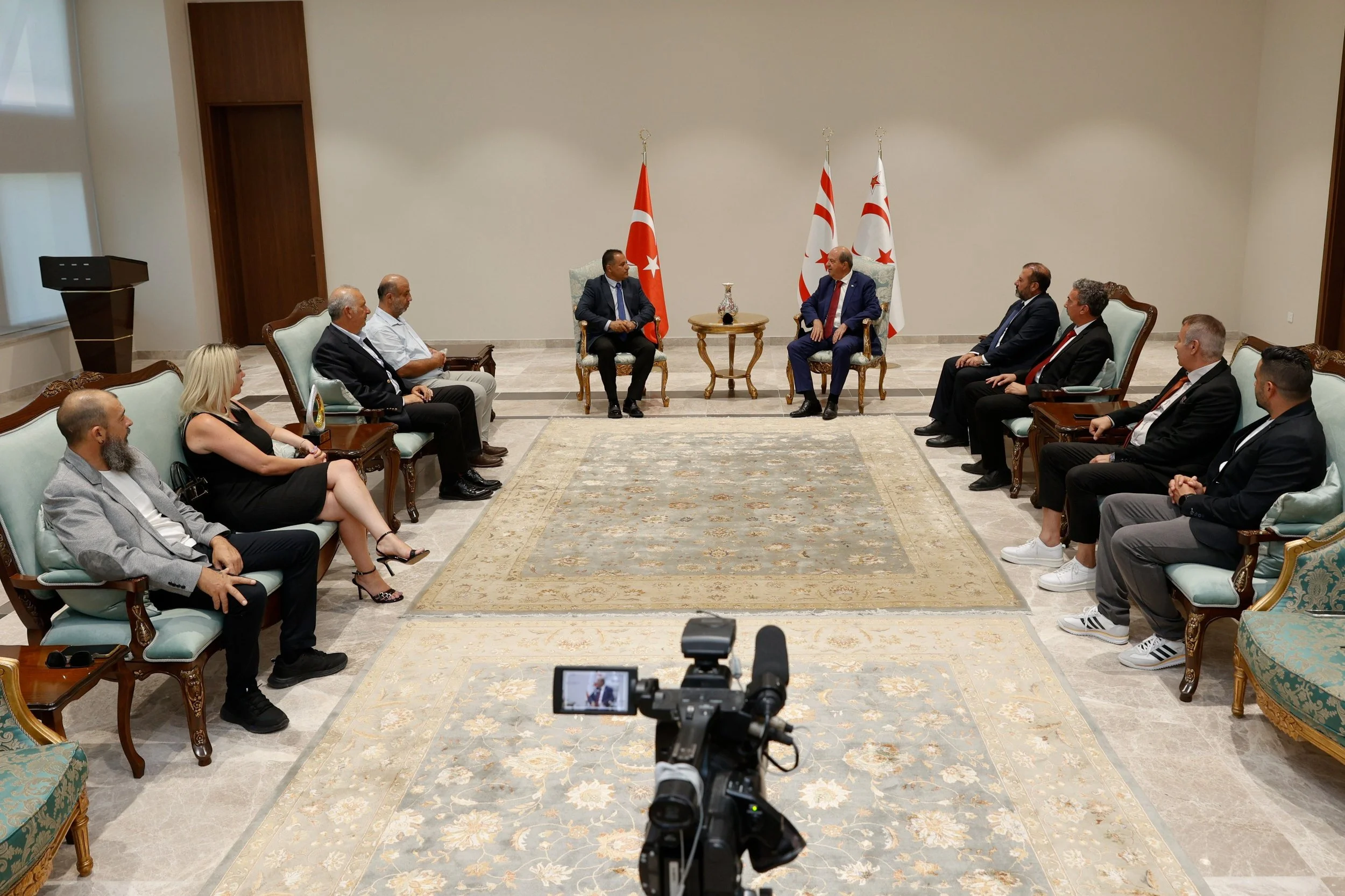 Necati Özsoy başkanlığındaki Kıbrıs Türk Spor Yazarları Derneği (KTSYD) Yönetim Kurulu, Cumhurbaşkanı Ersin Tatar’ı ziyaret etti.