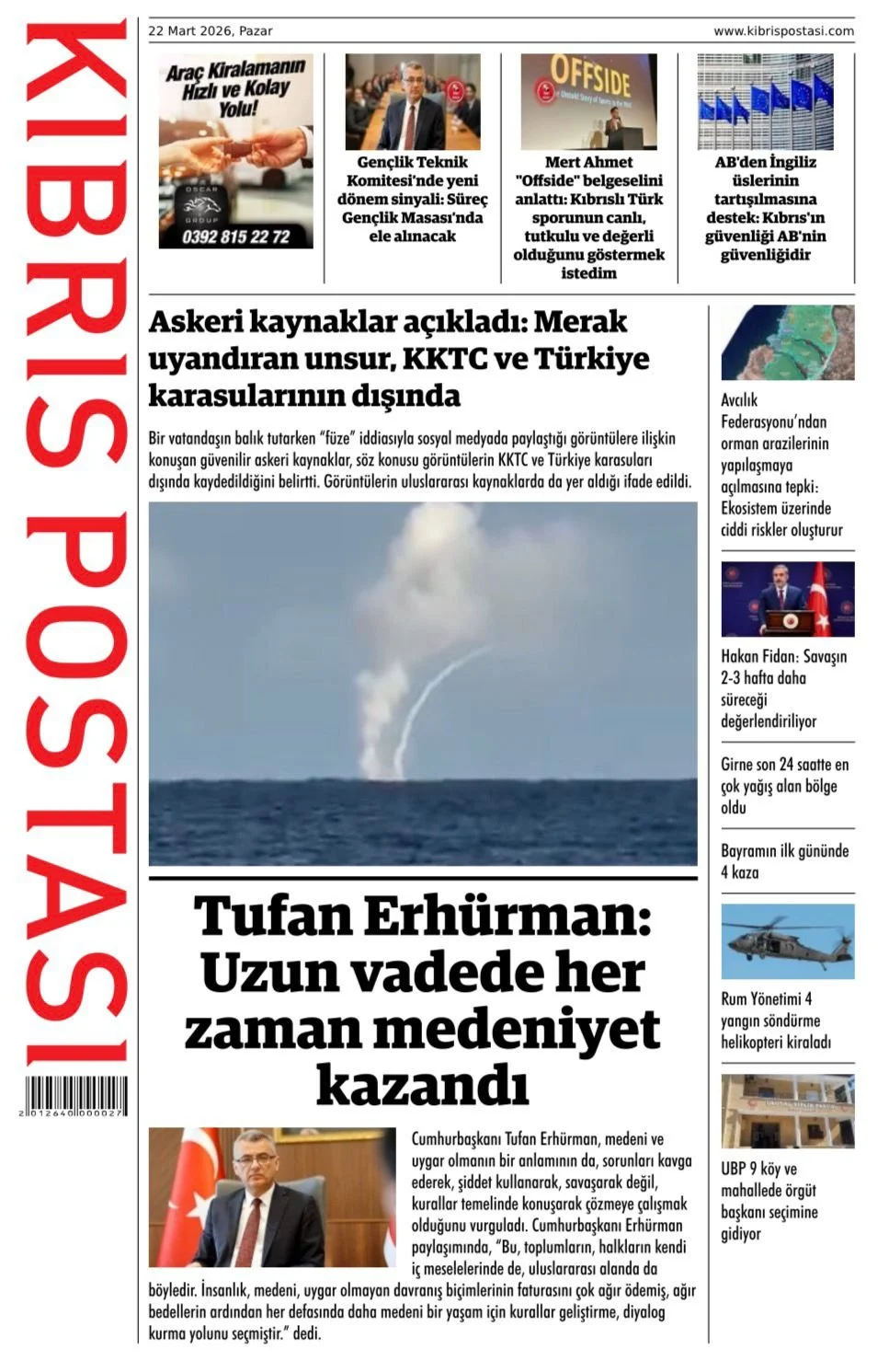 Gazete Manşetleri - 22 Mart 2026 GAZETE MANŞETLERİ 22 Mar Yazan: Feslikan Haber Ajansı manşetler Feslikan Haber Ajansı