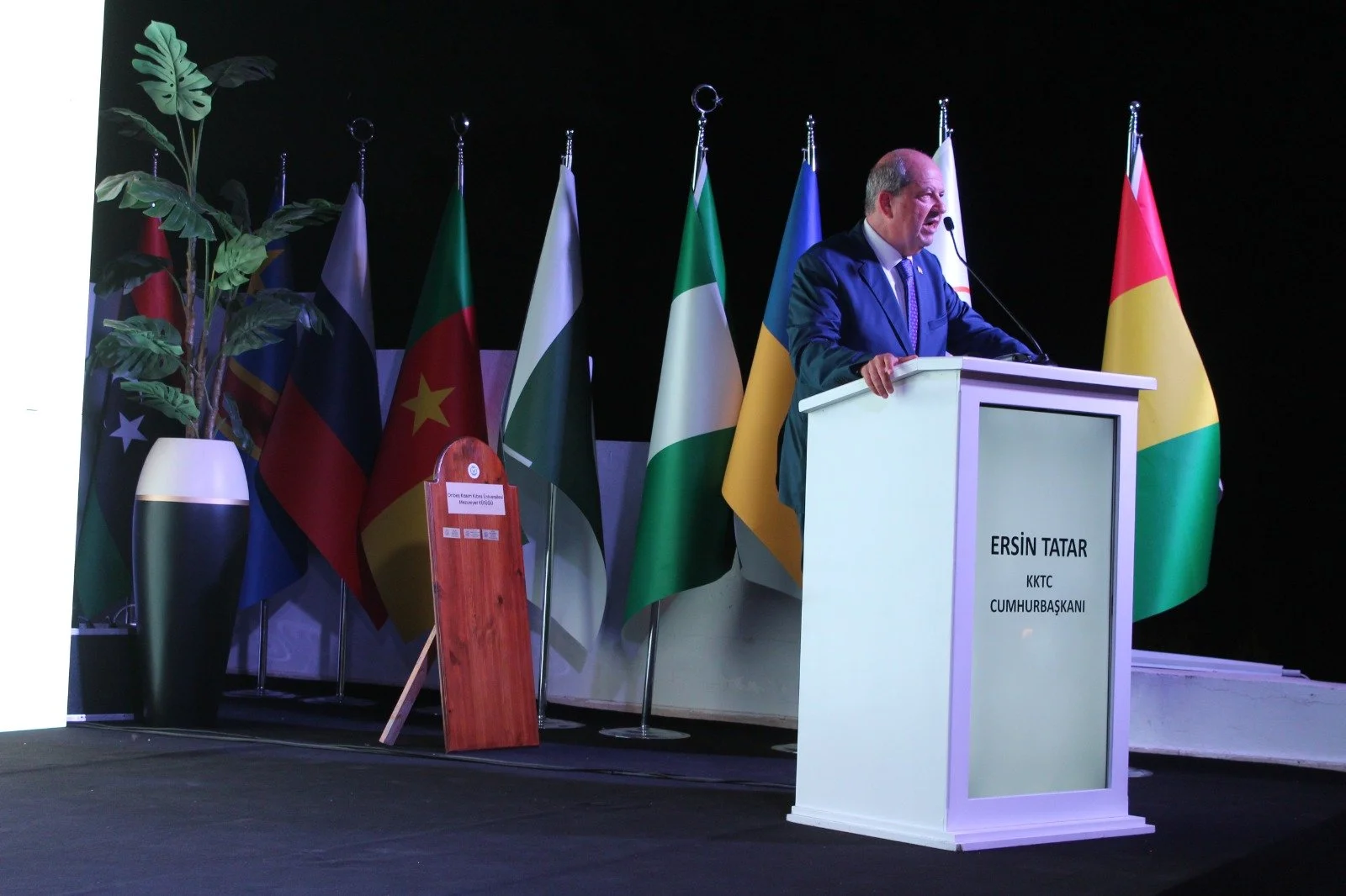Tören Cumhurbaşkanı Ersin Tatar’ın yaptığı konuşma ile devam etti. Tatar, Mütevelli heyeti Başkanı Ertan Birinci ve konukları selamladıktan sonra Ertan Birinci ile çocukluk yıllarında Rauf Denktaş’tan çok şey öğrendikerini, Ertan Birinci’nin öğrendiği değerler ile Onbeş Kasım Kıbrıs Üniversitesi’ni açtığını dile getirdi. Tatar, Genç Tv’nin haber ve iletişim alanında dünya çapında farklı ırklarda öğrencilere teknolojik ve akademik anlamda büyük katkıda bulunduğunu söyledi ve öğrencileri başarıyla mezun oldukları için tebrik etti.
