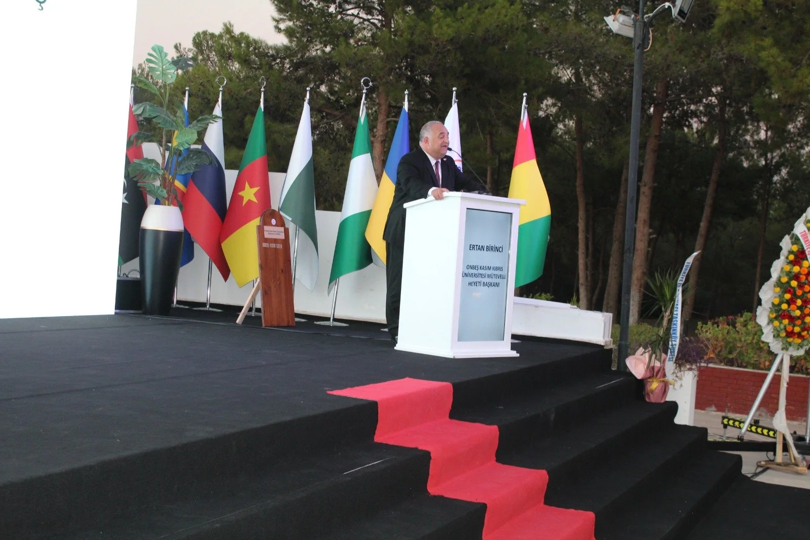 Ardından Onbeş Kasım Kıbrıs Üniversitesi Mütevelli Heyeti Başkanı Olan Ertan Birinci konuşma yapmak üzere kürsüye çıktı.