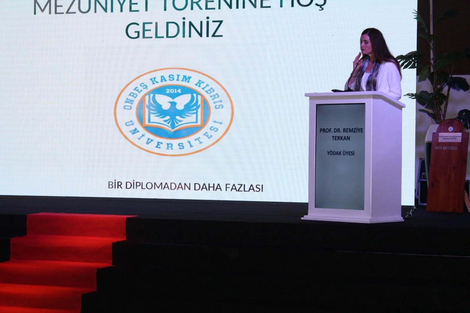 Birinci, Onbeş Kasım Kıbrıs Üniversinin ismini almış olduğu milli değerlere vurgu yaparak öğrencilerin kazandıkları diplomanın milli değerlerimizle bir bütün olarak anlam ifade edeceğini belirtti.