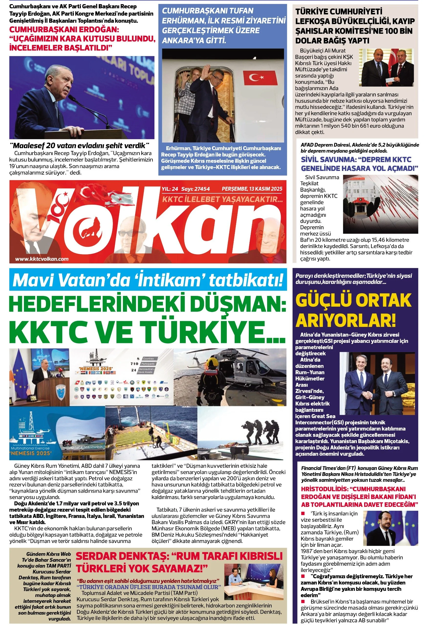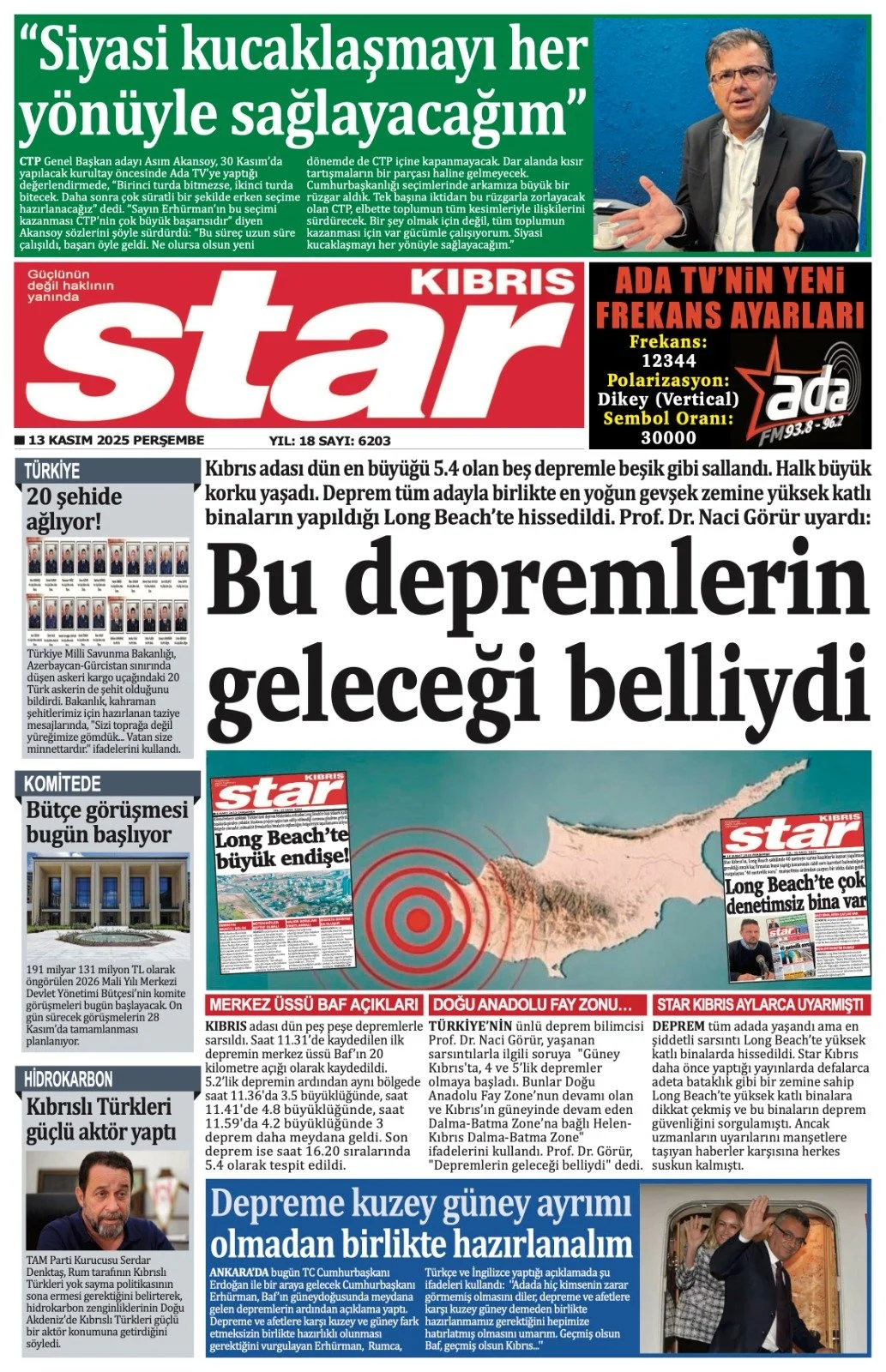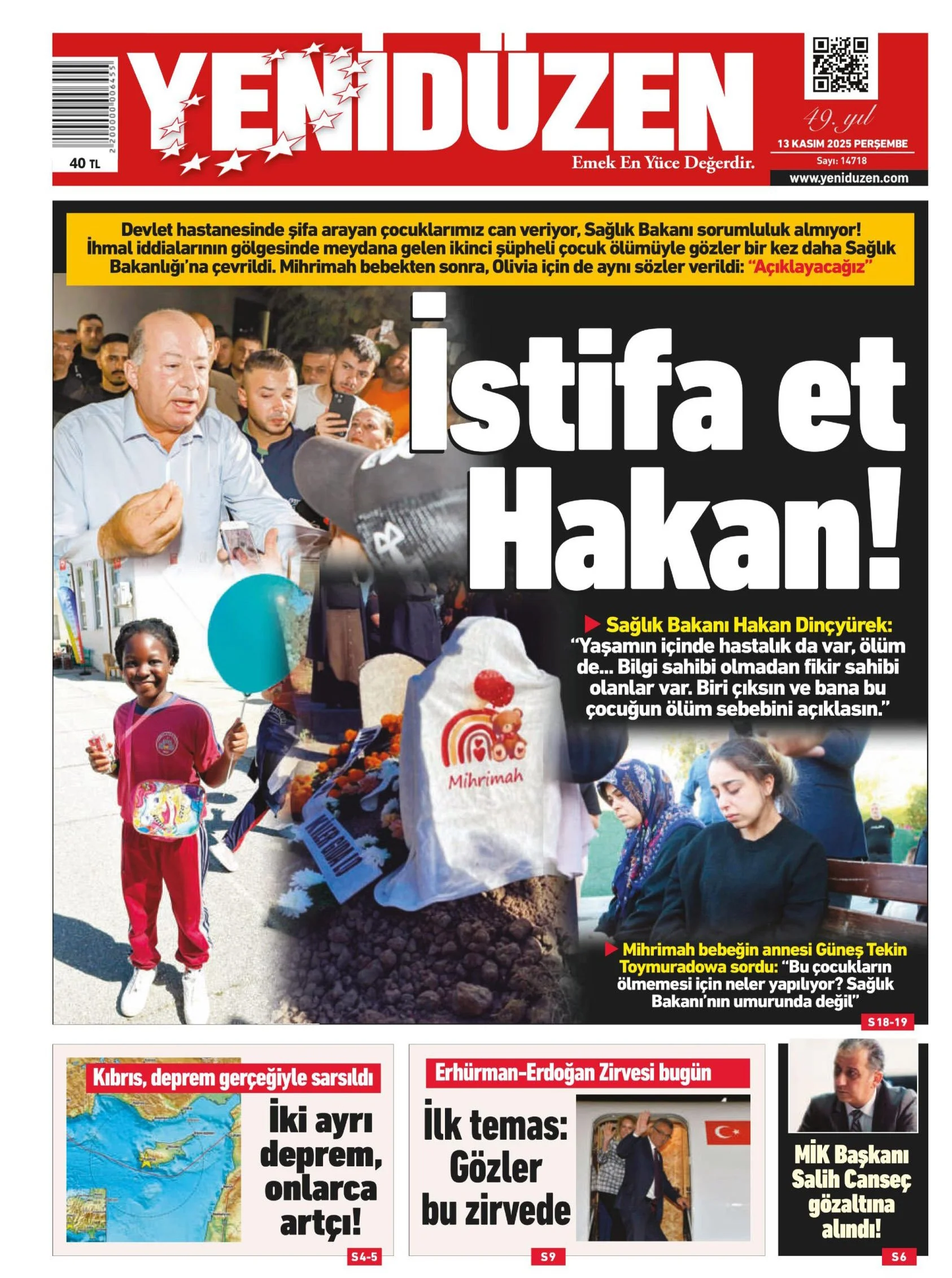 Gazete Manşetleri - 13 Kasım 2025 GAZETE MANŞETLERİ 13 Kas Yazan: Feslikan Haber Ajansı manşetler Feslikan Haber Ajansı