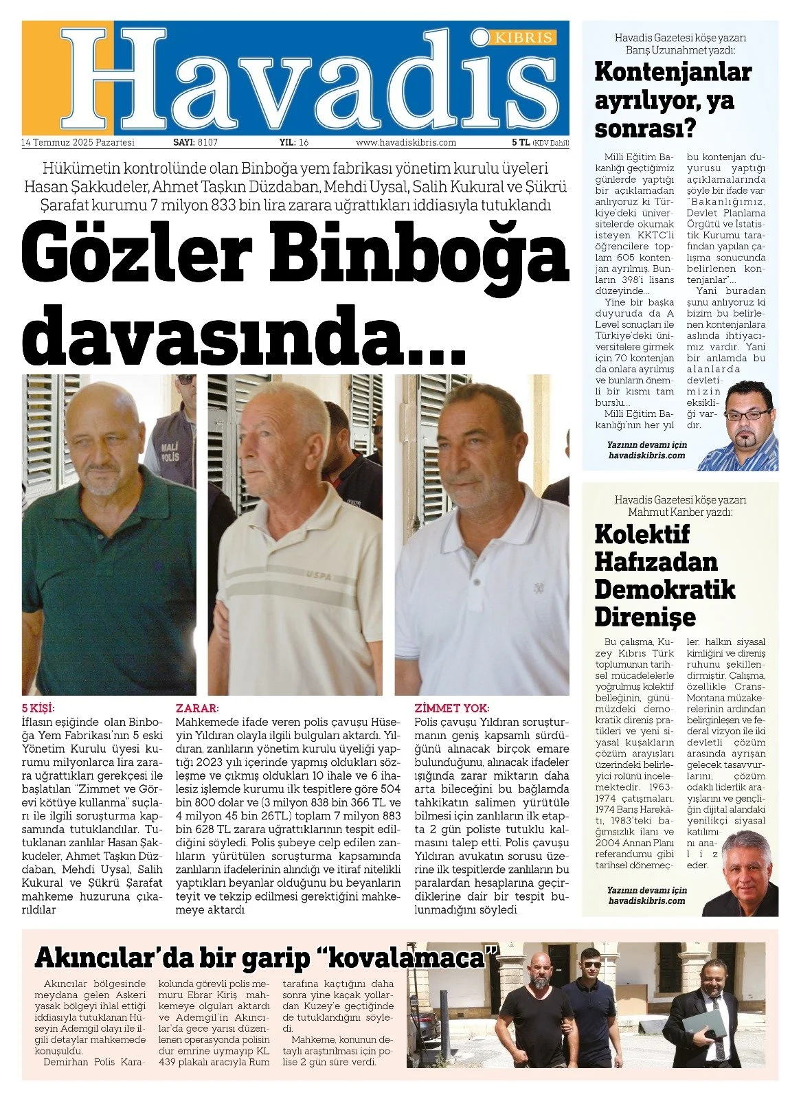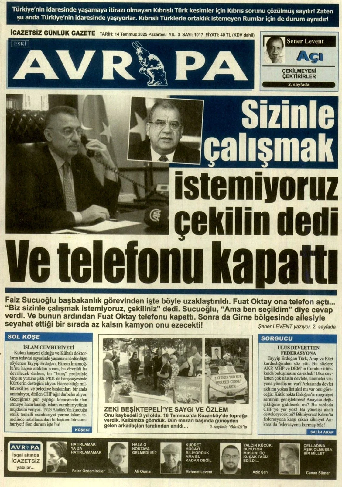 Gazete Manşetleri - 14 Temmuz 2025 KIBRIS 13 Tem Yazan: Feslikan Haber Ajansı KKTC ve Türkiye Gazetelerinin manşetleri burada… Ana Sayfa Feslikan Haber Ajansı