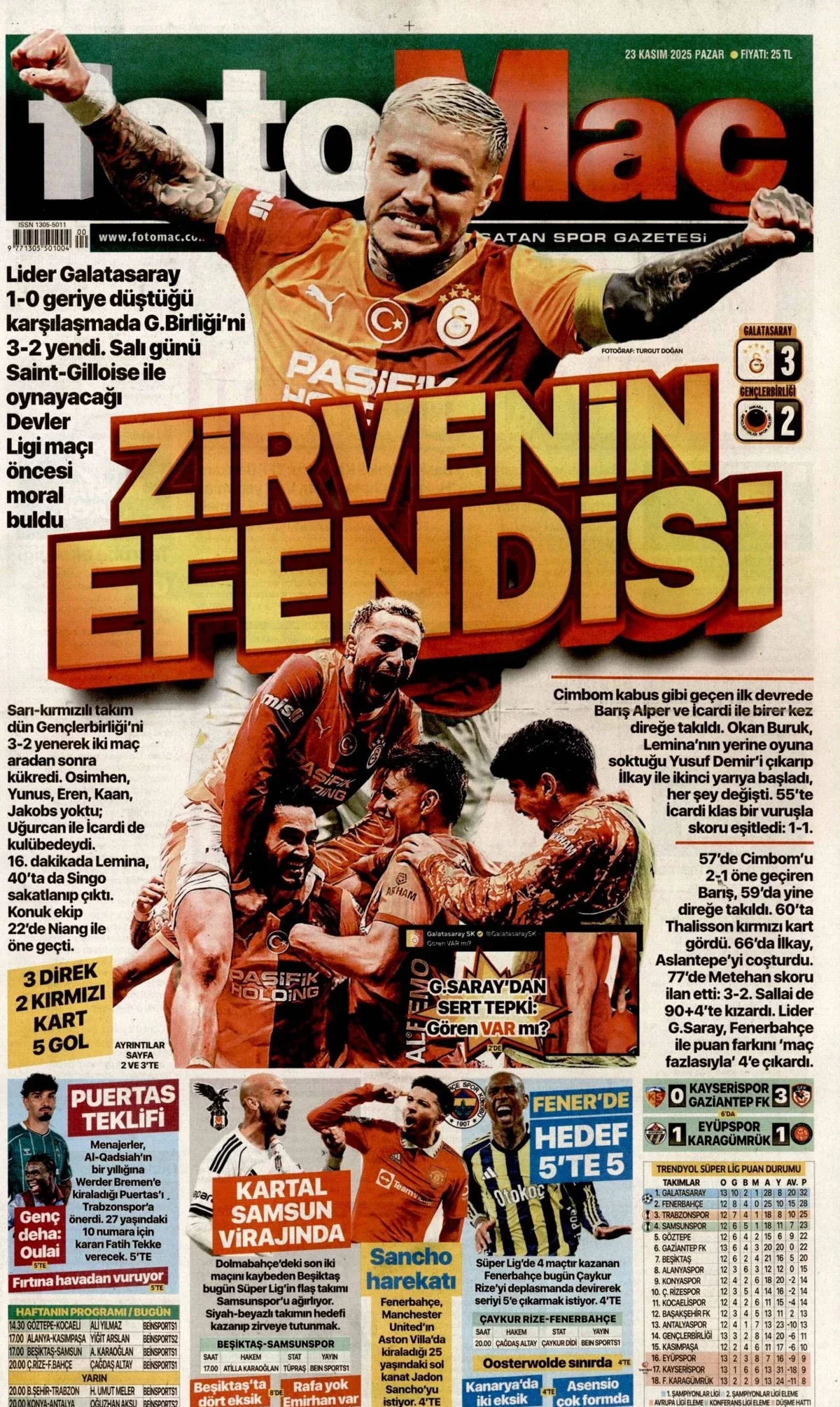 Gazete Manşetleri - 23 Kasım 2025 GAZETE MANŞETLERİ 23 Kas Yazan: Feslikan Haber Ajansı manşetler Feslikan Haber Ajansı