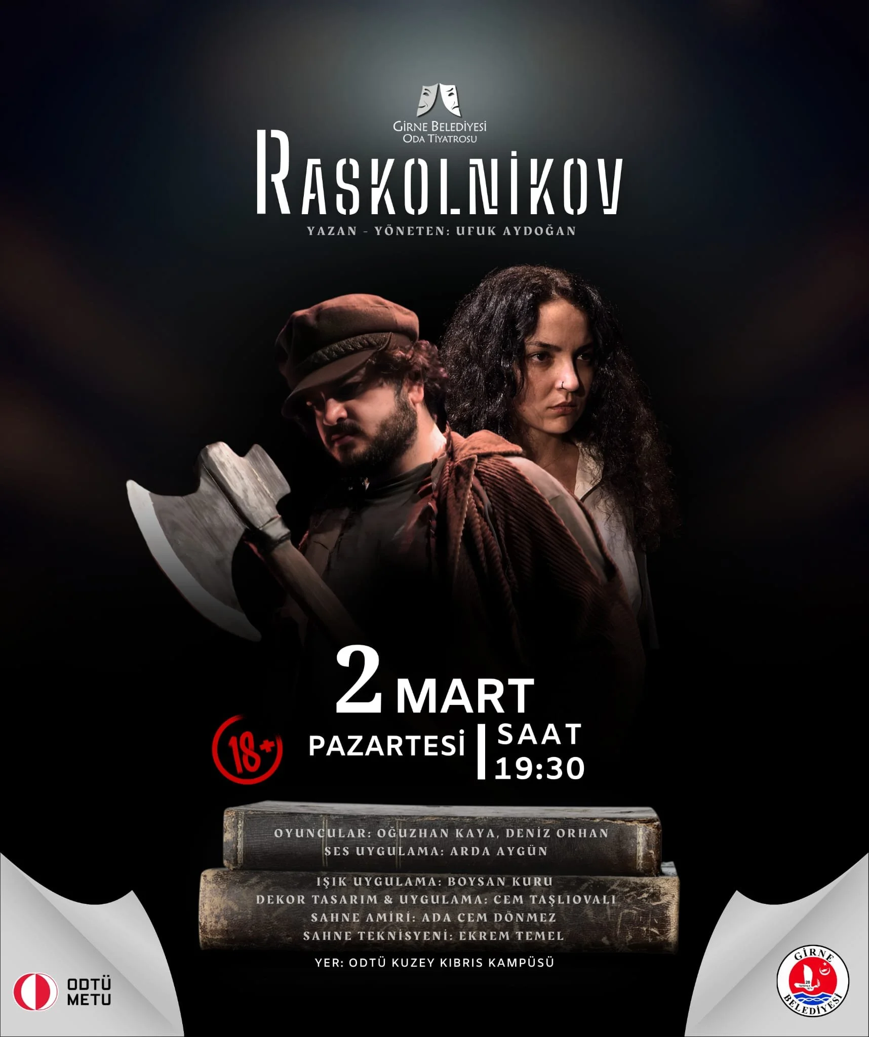 Girne Belediyesi Oda Tiyatrosu’nun sahnelediği “Raskolnikov” adlı tek perdelik oyun, 2 Mart Pazartesi günü ODTÜ Kıbrıs Kampüsü’nde, ücretsiz olarak sahnelenecek.