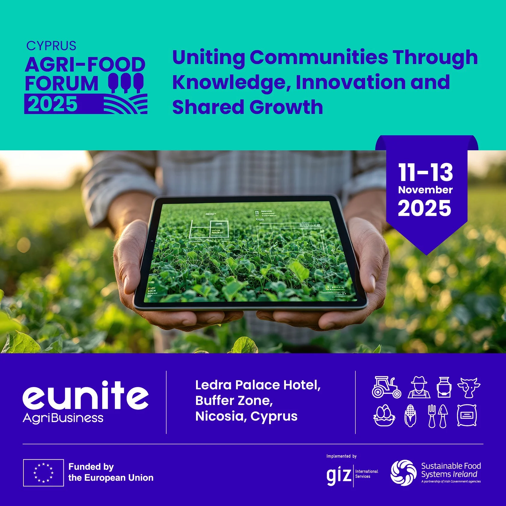 “Cyprus Agri-Food Forum 2025”, Kıbrıs Türk toplumuna yönelik AB Yardım Programı kapsamında finanse edilen “Eunite: Uniting Cyprus for Business” Programı’nın bir parçası olarak düzenlenecek.