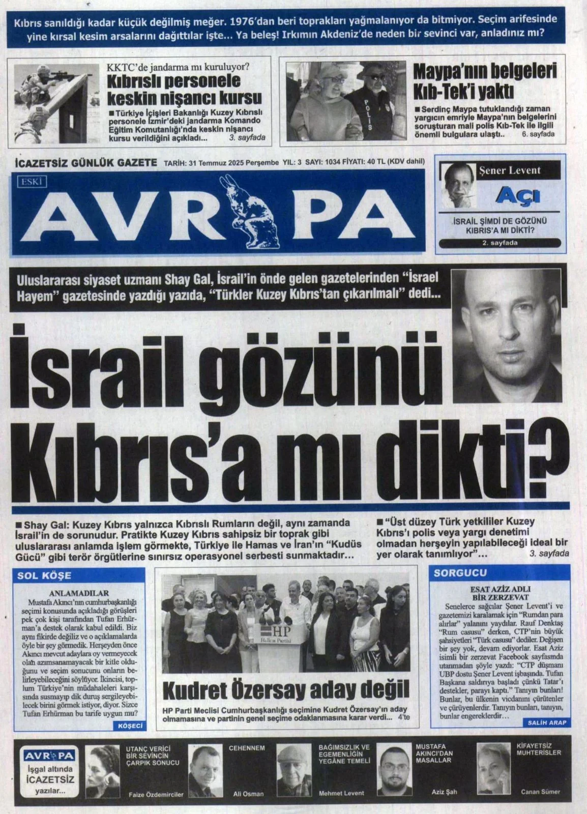 Gazete Manşetleri - 31 Temmuz 2025 KIBRIS 31 Tem Yazan: Feslikan Haber Ajansı KKTC ve Türkiye gazetelerinin manşetleri burada… Ana Sayfa Feslikan Haber Ajansı