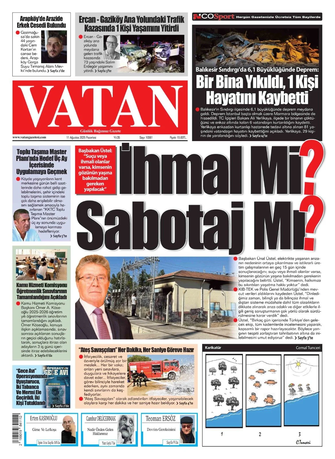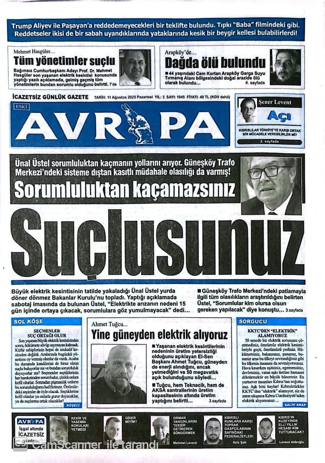 Gazete Manşetleri - 11 Ağustos 2025 KIBRIS 11 Ağu Yazan: Feslikan Haber Ajansı KKTC ve Türkiye gazetelerinin manşetleri burada… Ana Sayfa Feslikan Haber Ajansı
