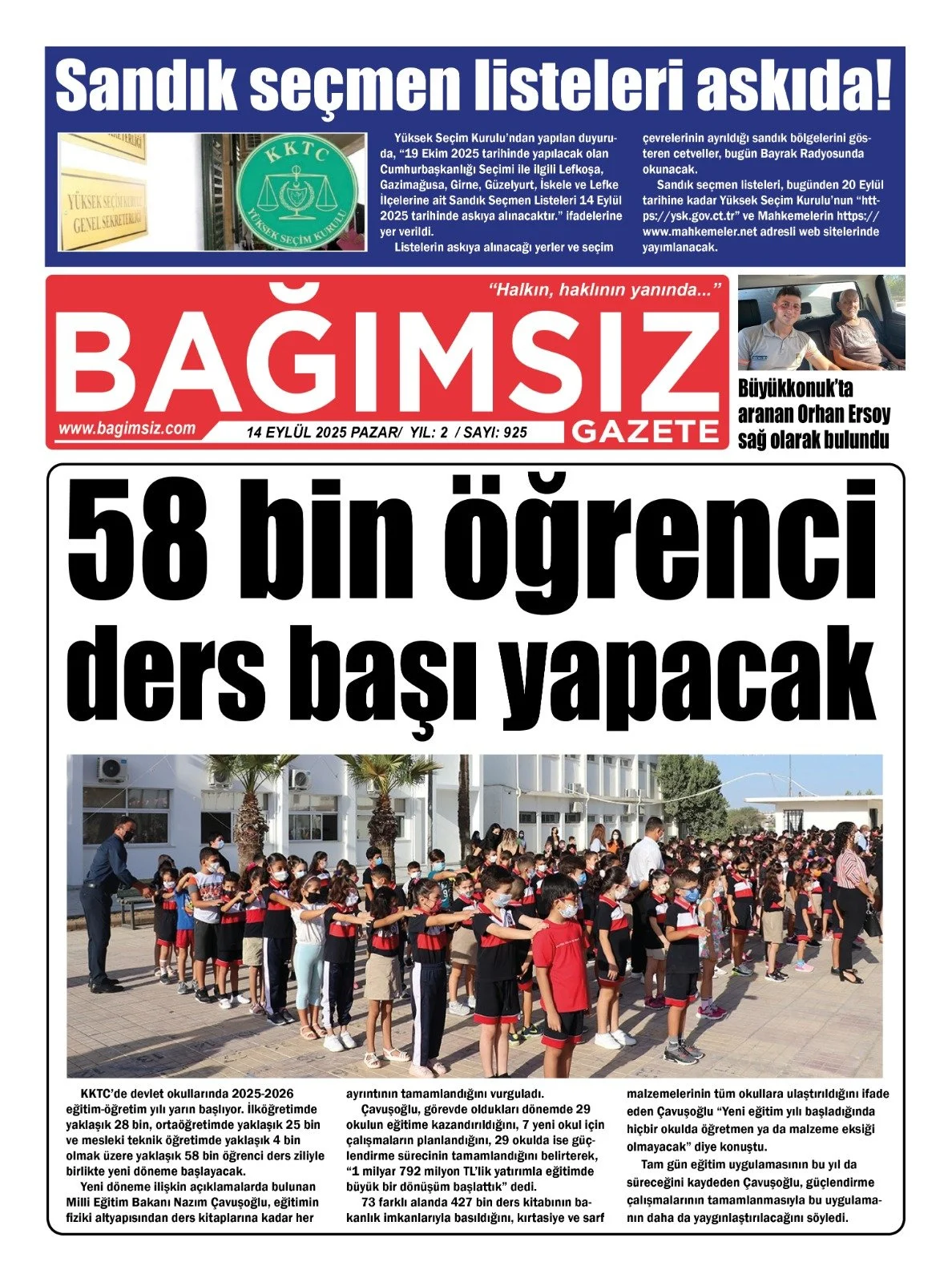 Gazete Manşetleri - 14 Eylül 2025 KIBRIS 14 Eyl Yazan: Feslikan Haber Ajansı KKTC ve Türkiye gazetelerinin manşetleri burada… Ana Sayfa Feslikan Haber Ajansı