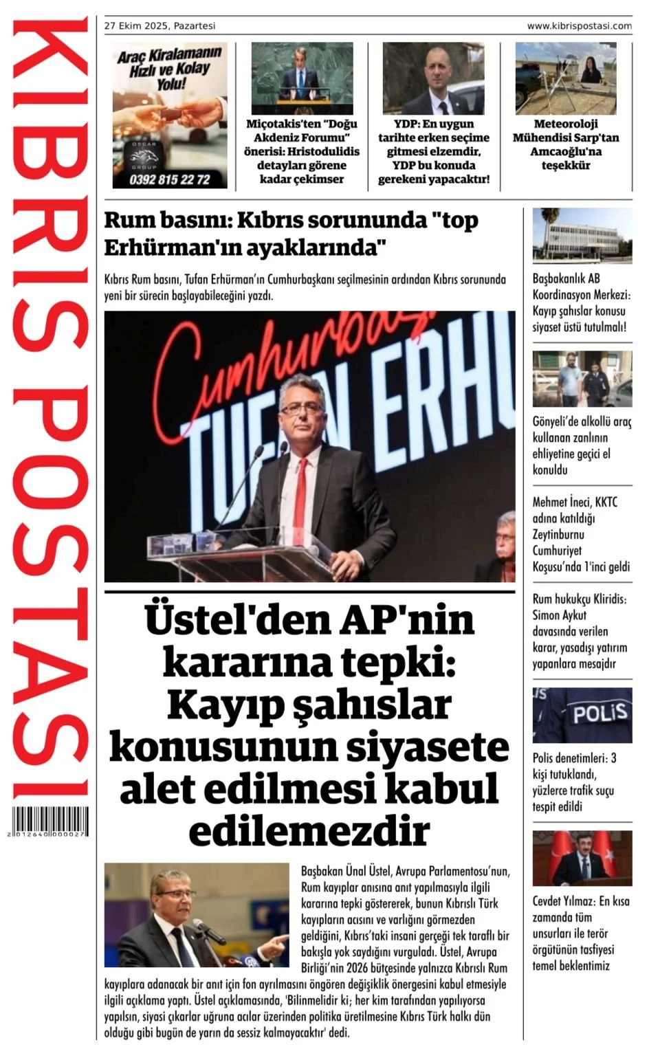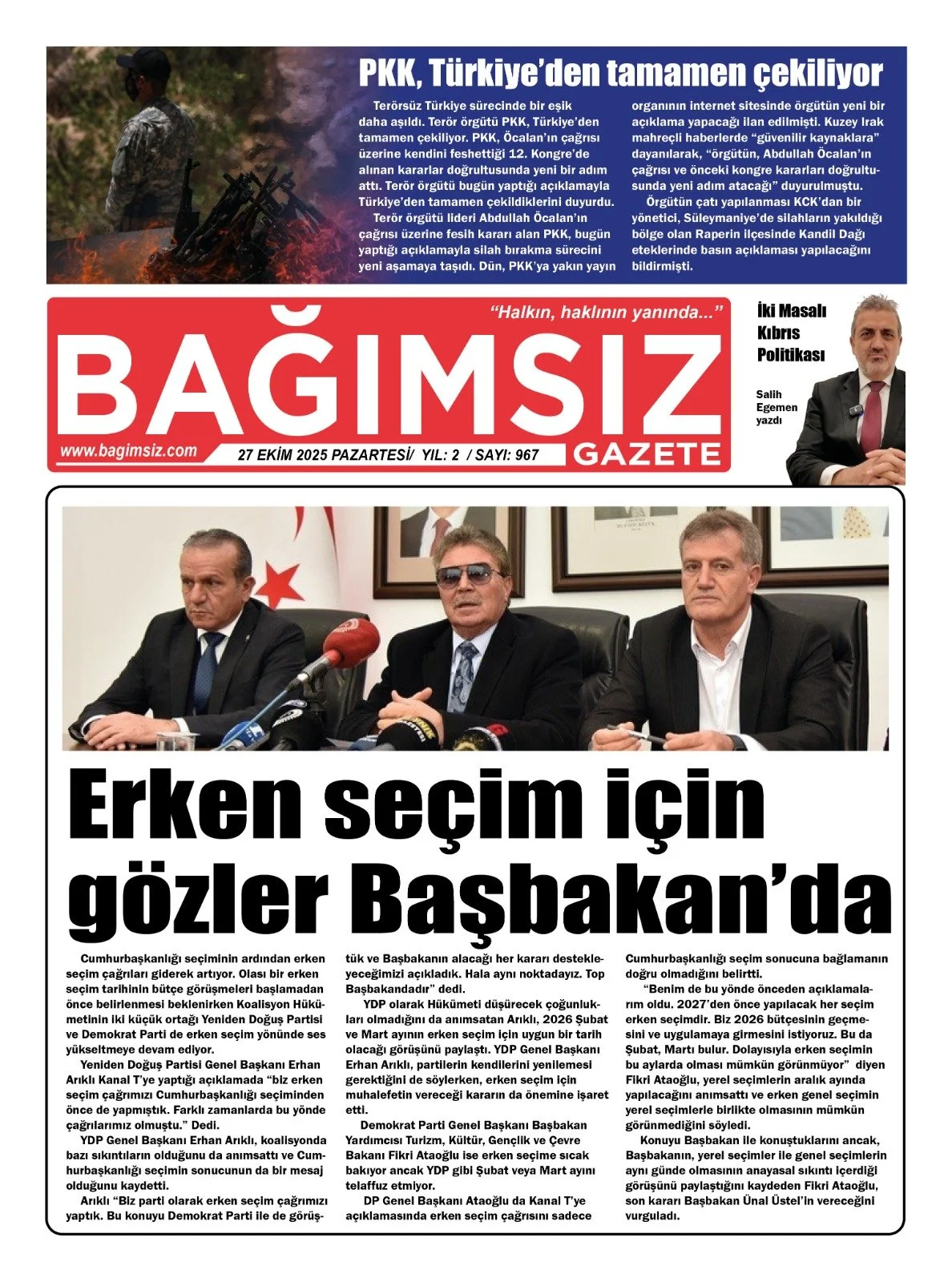 Gazete Manşetleri - 27 Ekim 2025 GAZETE MANŞETLERİ 27 Eki Yazan: Feslikan Haber Ajansı KKTC ve Türkiye gazetelerinin manşetleri burada… manşetler Feslikan Haber Ajansı