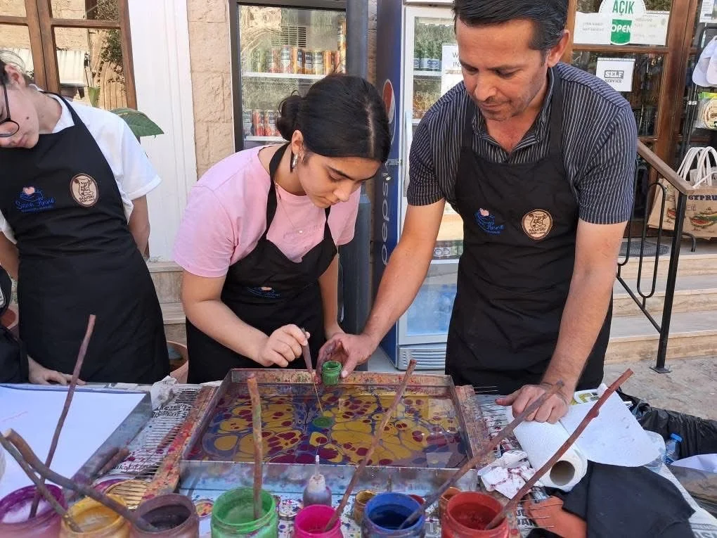 Suna ve Ata Atun Mağusa Tarihini Araştırma ve Yazın Vakfı'nın Gazimağusa’daki merkezinde çocuklara ebru sanatı eğitimi verildi.